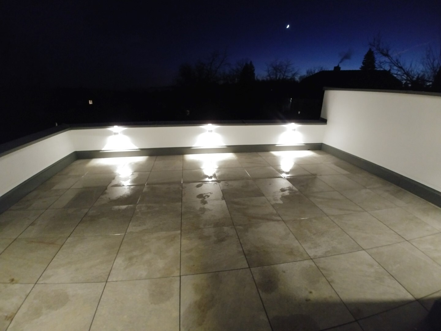 Die Dachterrasse ist auch fertig, da hab ich das schöne Wetter genutzt und die Lampen montiert.