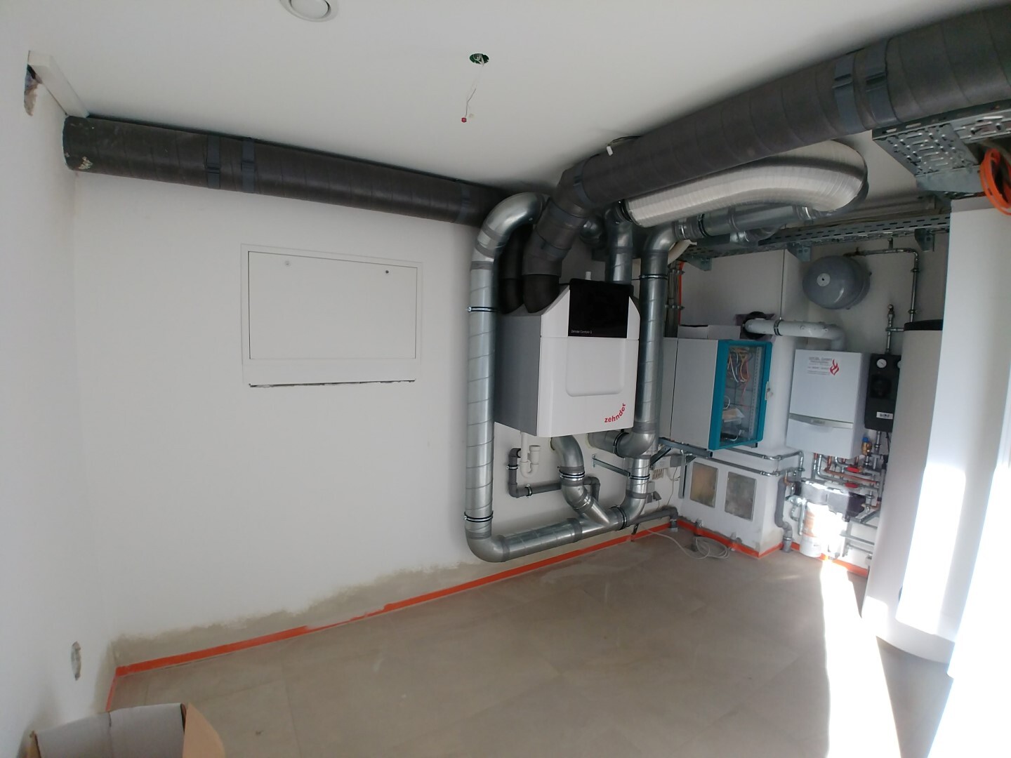 Die Woche wurde die Lüftungsanlage, Stromzähler und WW-Boiler eingebaut. Heizung/Sanitär/Lüftung ist somit fertig, Elektro läuft, der Elektriker muss aber nach Einzug noch mal anrücken, da wird dann in der Küche noch was gemacht, die Lüftung in Betrieb genommen sowie die Türstation + Ekey verkabelt.