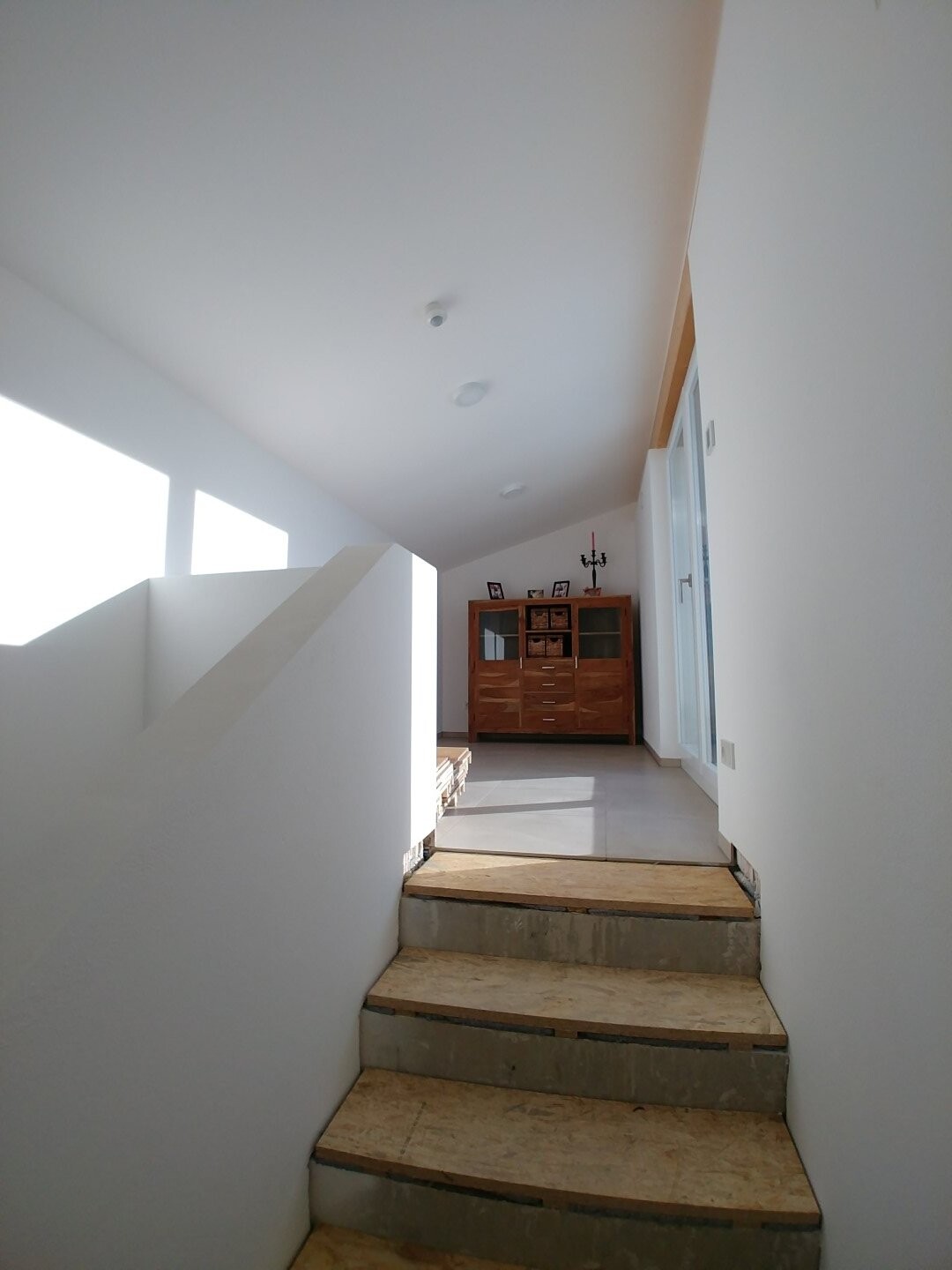 - Die Treppe muss auch noch belegt werden, danach kümmert sich der Maler um die Setzstufen.