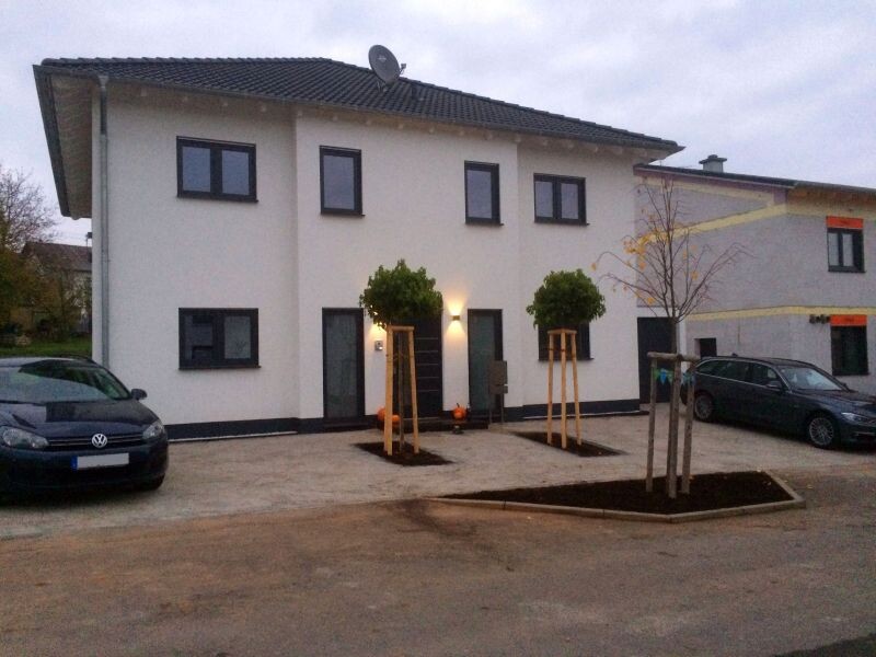 Hier auch mal ein Foto unseres Hauses (~190qm Wohnfläche, Stein auf Stein (monolithisch)):