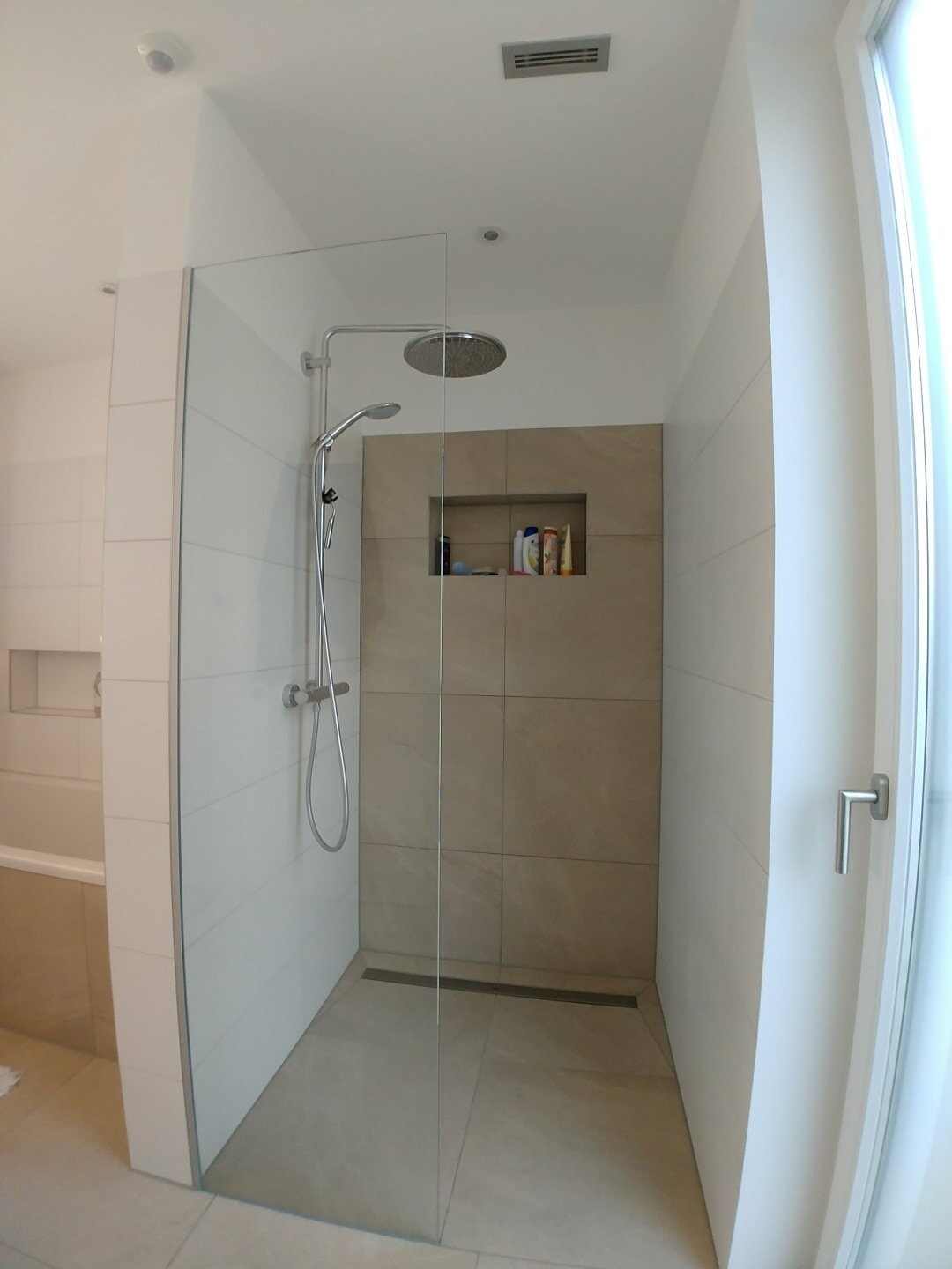 Mit der Glaswand bei der Dusche haben wir uns auch arrangiert, nachdem wir sowas bei Planungsbeginn eigentlich nicht wollten. Das ist ein guter Kompromiss.