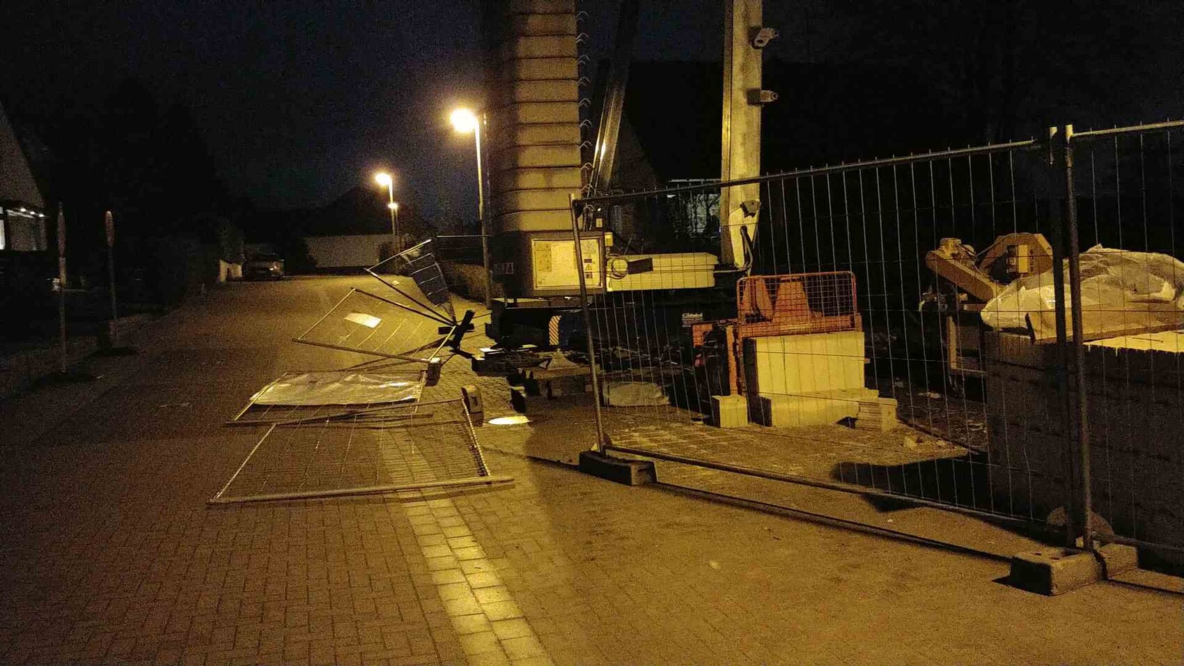 Gruß von der Baustelle! Der Sturm hat zugeschlagen. Durch die ganzen Baustellenschilder konnte der Bauzaun dem Sturm nicht standhalten.