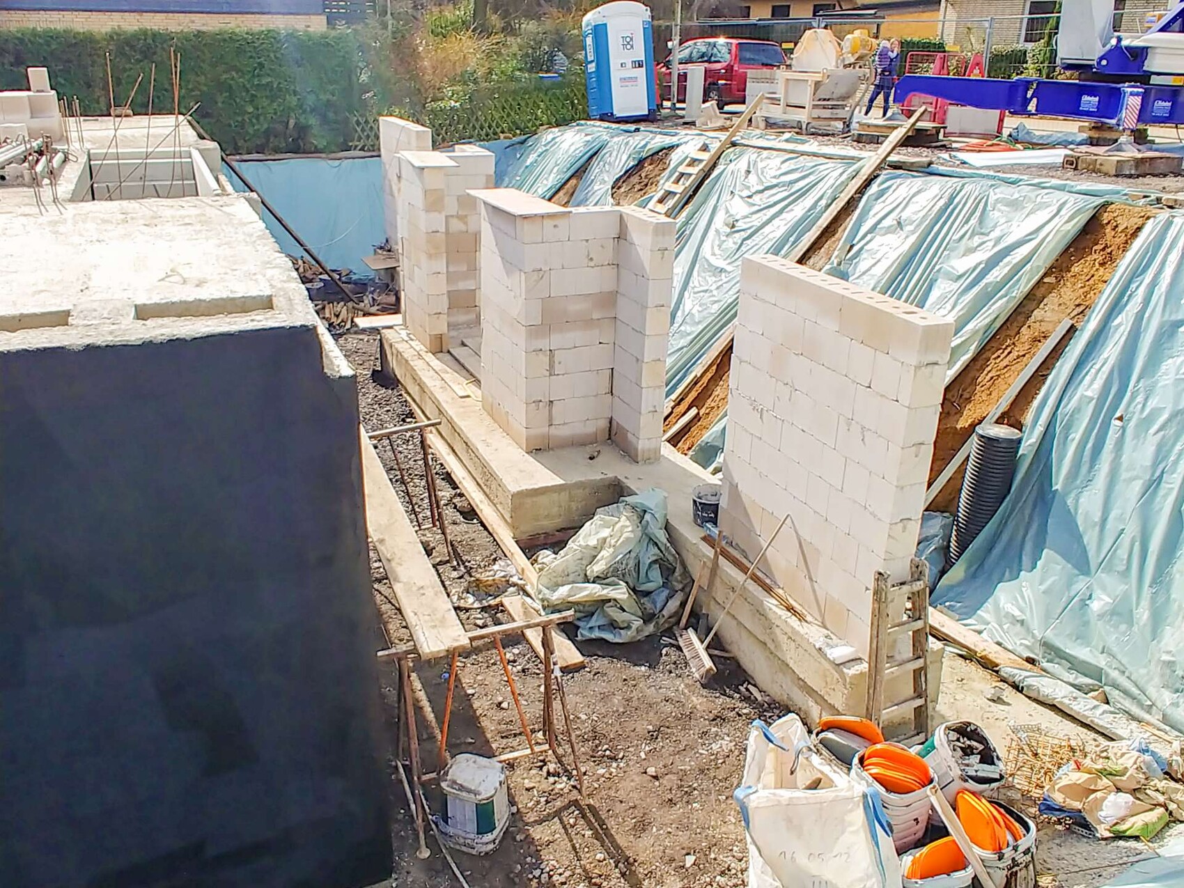 Hier die versprochenen Fotos. Am Dienstag kommt der Gutachter, um vor Verfüllung die ordnungsgemäße Errichtung des Kellers zu überprüfen und am Mittwoch soll verfüllt werden.