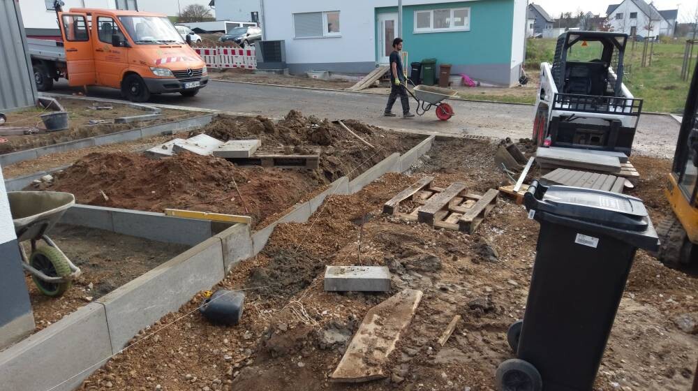 Parallel wurden alle Rabatten gesetzt und morgen kommt dann das Pflaster - bis Ende der Woche wird dann noch Mutterboden verteilt und die Außenanlagen sind dann soweit fertig, dass wir den Rest selbst machen können
