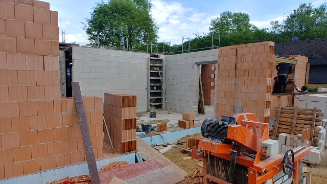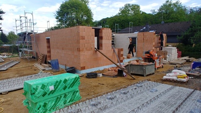 So sah es gestern aus auf unserer Baustelle. Leider gibt es Zeitverzug, da der Rohbauer die Porotonsteine zu spät erhalten hat. Eigentlich sollte das OG schon fast stehen.Sieh es positiv. Bei uns sind‘s jetzt 6 Monate Verzug, bis auf eine Baugrube haben wir nichts. Rohbauer ist jetzt rausgeflogen, Vertrag wurde aufgelöst. Selten an so ein Allerwertesten von Unternehmer geraten. Meinte 7k 14k teure Erkenntnis. Baut mit einem Handwerker, dessen Ziel es ist Dinge zu schaffen, nicht mit Unternehmen, die vielleicht größer sind lieber Briefe (!) schreiben statt mit dem Kunden zu reden