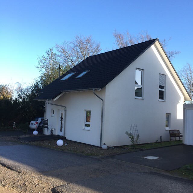 Ich finde es auch interessant, wie unterschiedliche Häuser doch gebaut werden Jap , ist ein Fertighaus wo im Werk Verputz wurde, ich finde das gut dadurch wirkt die Fassade nicht so glatt.I