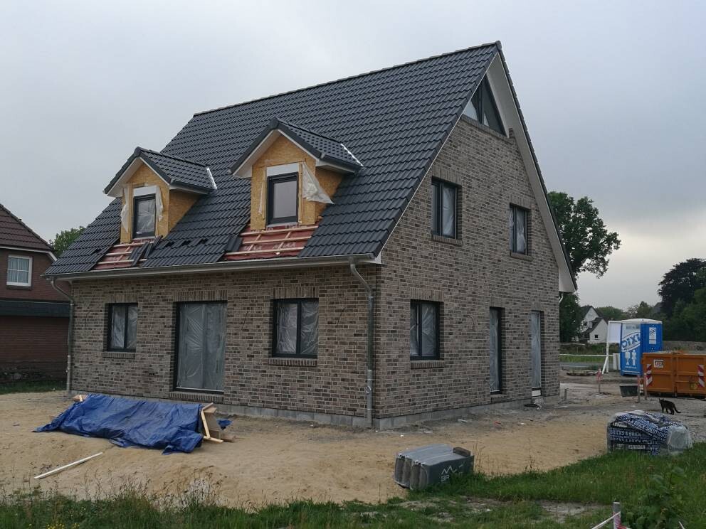 Es Wir freuen uns auch darüber endlich das Haus ohne störendes Gerüst zu sehen. Phaszinierend, bei uns ist das Gerüst noch dran, wir warten noch auf die Verfugung, aber auch bei uns sind die Gauben noch nackig - die Ziegel drunter fehlen und die Seitenverkleidung (Schiefer). Keine Ahnung, warum das nicht gemacht wird.