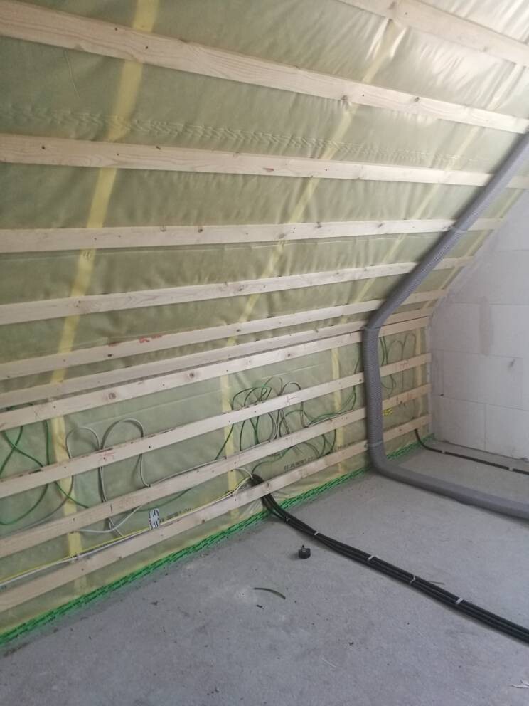 Es ist viel passiert. Elektriker und Sanitär haben ordentlich Leitungen und Rohre gelegt und auch der Trockenbau ist fertig. Und auch die Putzer waren diese Woche fleißig. Wir freuen uns auch darüber endlich das Haus ohne störendes Gerüst zu sehen. Es geht also Schlag auf Schlag und wir liegen voll im Plan. In der übernächsten Woche beginnen dann die Vorbereitungen für die Fußbodenheizung und den Estrich.