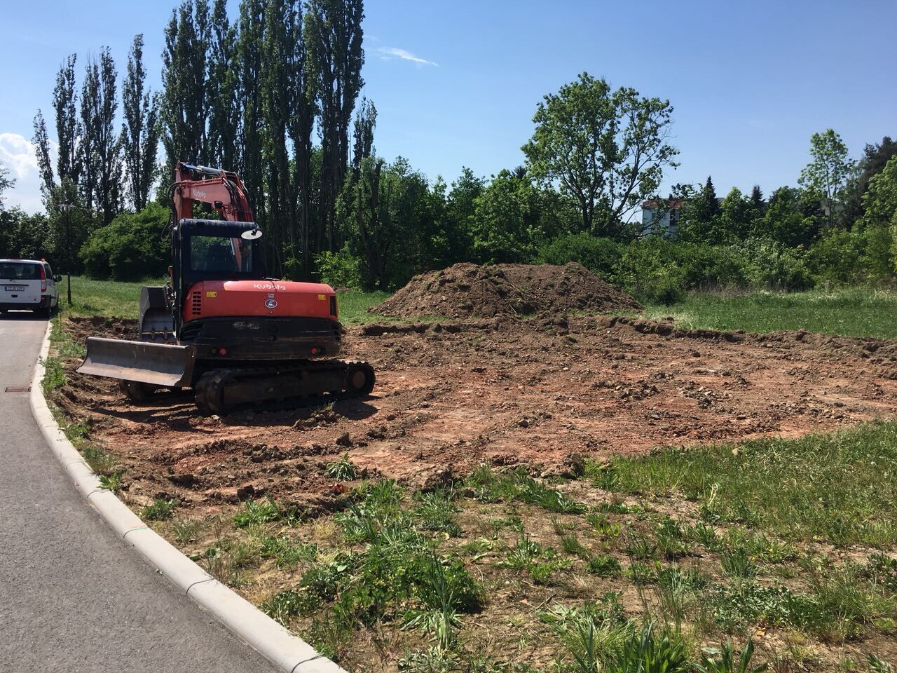 Hier 1.60m Bodenaustausch + noch mal 0.40m Aufschüttung um auf Straßenniveau zu kommen