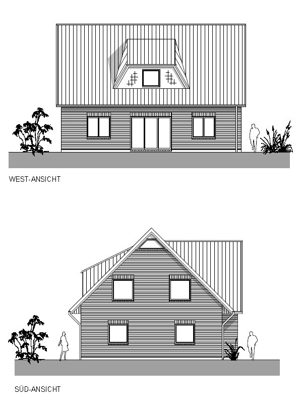 In erster Linie geht es um die Fenster auf der folgenden Ansicht. Diese ist nicht auf dem aktuellen Stand weil da die Fenster auf der Südseite unten noch kleiner sind.