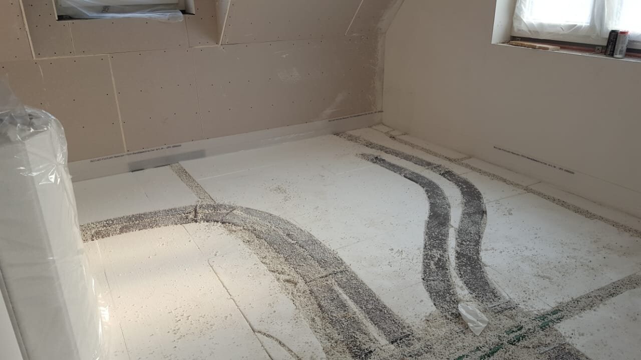 Bei uns laufen die Vorbereitungen für die Fußbodenheizung auf Hochtouren. Mittlerweile ist die Dämmung im OG komplett verlegt und auch die Heizungsanlage wird vorbereitet... zumindest das Podest steht schon.