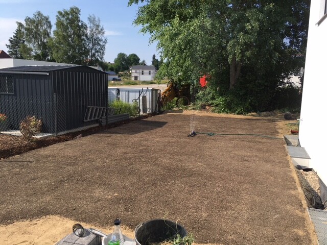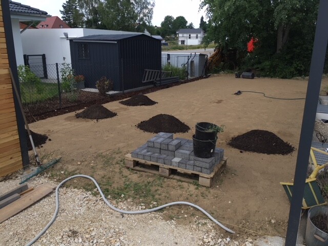 Ich habe oben auf den Boden ca. 3-5cm Kompost/Humus Substrat verteilt, damit der Rasen besser anwächst. Das hat auf der Südseite perfekt geklappt. 2 Wochen nach der Aussaat war der Rasen schon richtig satt grün und buschig. Ich hab es total verpasst nen Rasebmäher zu kaufen, so schnell ist der gewuchert.