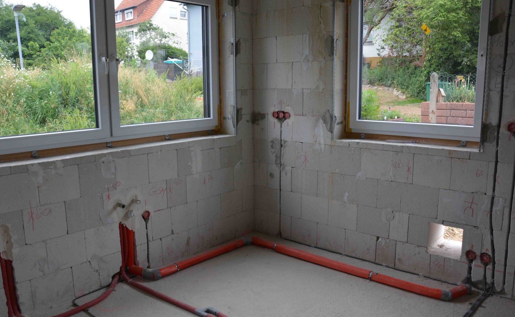 AxelHi Axel, Ob Leitungen in Leerrohre gelegt werden oder nicht, daran scheiden sich die Geister. Wenn diese offen über den Boden gelegt werden ist die Gefahr größer das etwas kaputt geht weil jeder darauf rum trampelt. Daher schon gut das die Cat Kabel im Leerrohr liegen. Für den Elektriker geht die Verlegung ohne Leerrohr natürlich schneller. Unser Elektriker hatte von sich aus auf dem Boden Leerrohre und in der Wand dann ohne.