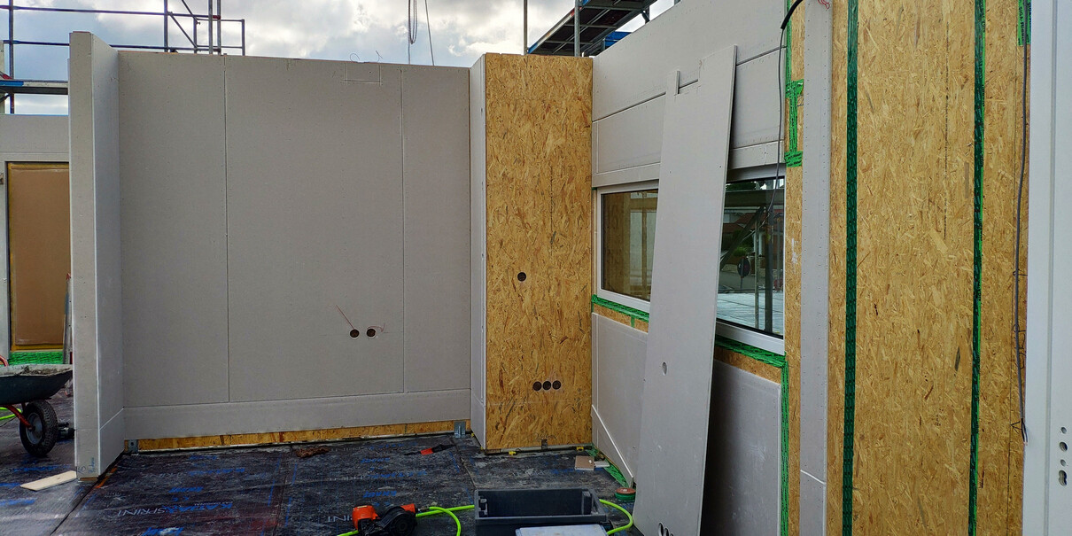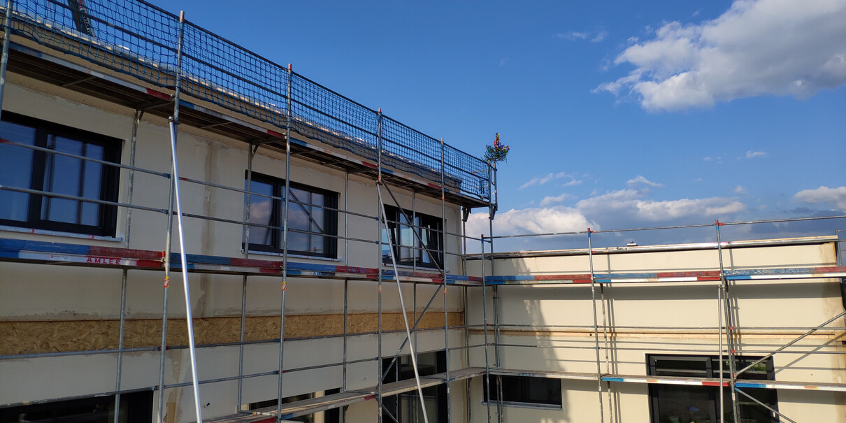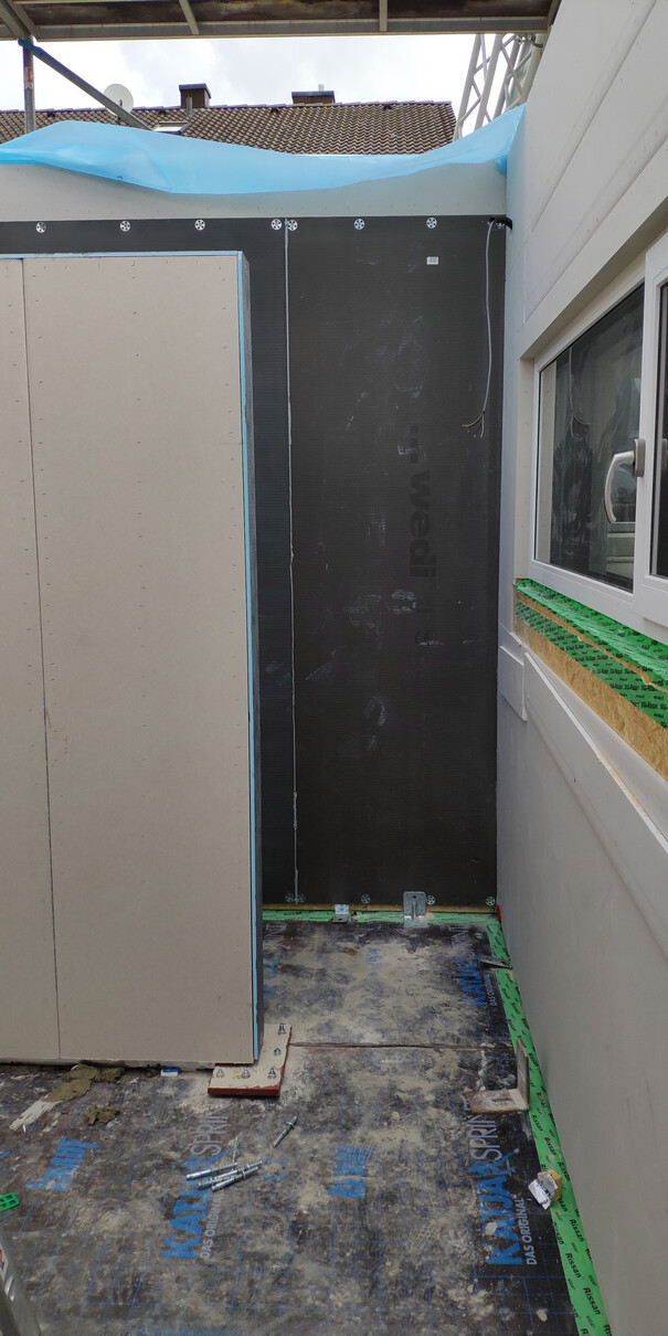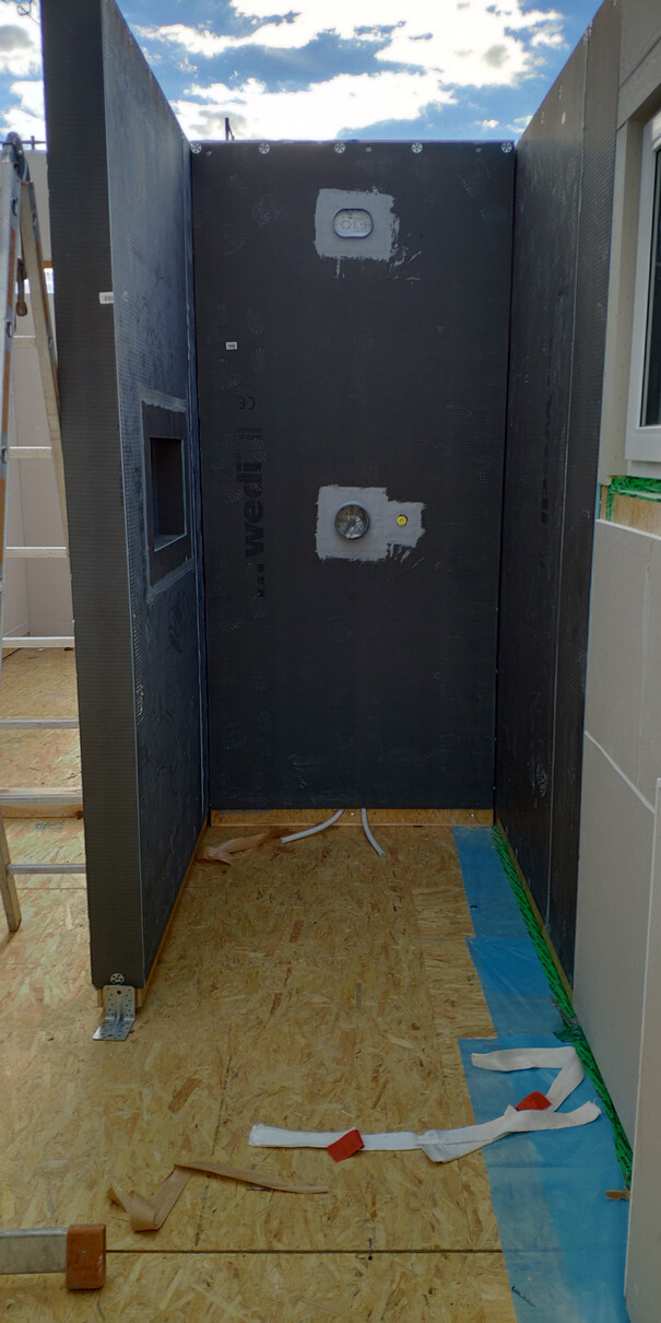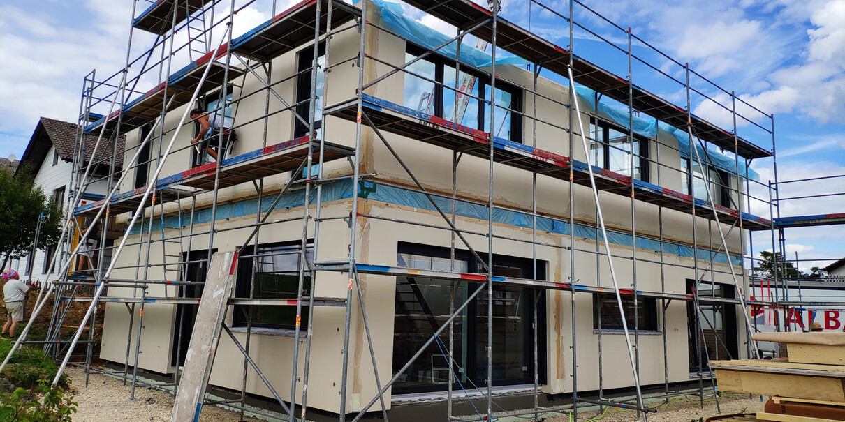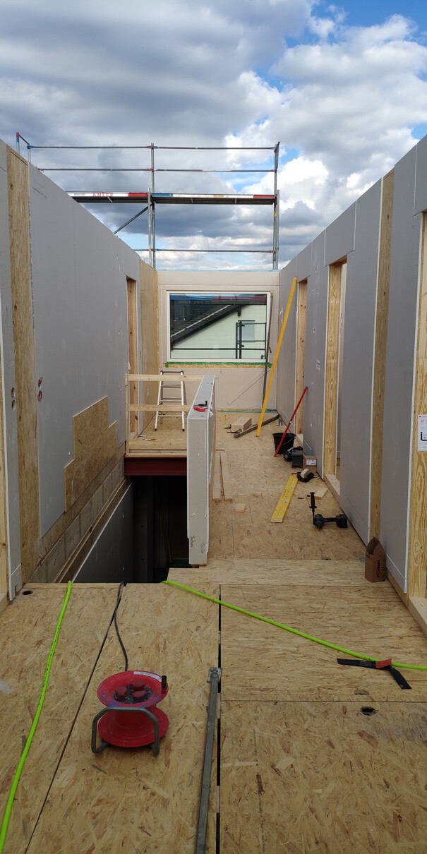 So die ersten 3 Tage Hausstellung sind vorbei und es wurde.....ein Haus! Dächer sind gedeckt, die Woche laufen noch ein paar kleinere Arbeiten, bevor es nächste Woche dann an die Hausanschlüsse, Wasserinstallation und Elektrik geht! Die Bodenplatte für die Garage soll auch nächste Woche kommen.