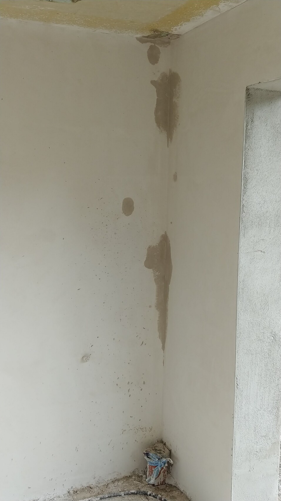 Im Keller sah es heute nach dem Regen so aus. Das Ganze nachdem drei Tage ein Trocknungsgerät den Keller nach den Putzarbeiten getrocknet hat. Sieht so aus, als käme das Wasser von unten. Wände und Decken sind völlig trocken.