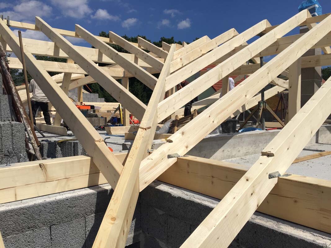 - verteilen, ausrichten und befestigen von den Sparren und Kehlbalken