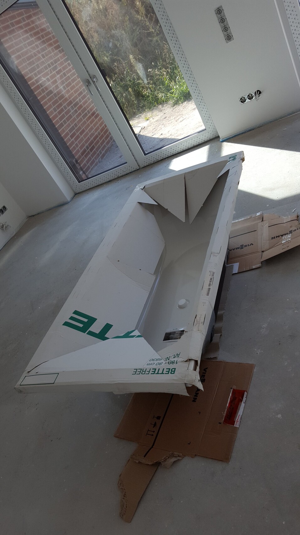 Unsere Badewanne ist da. Ah! Schon drin gelegen?