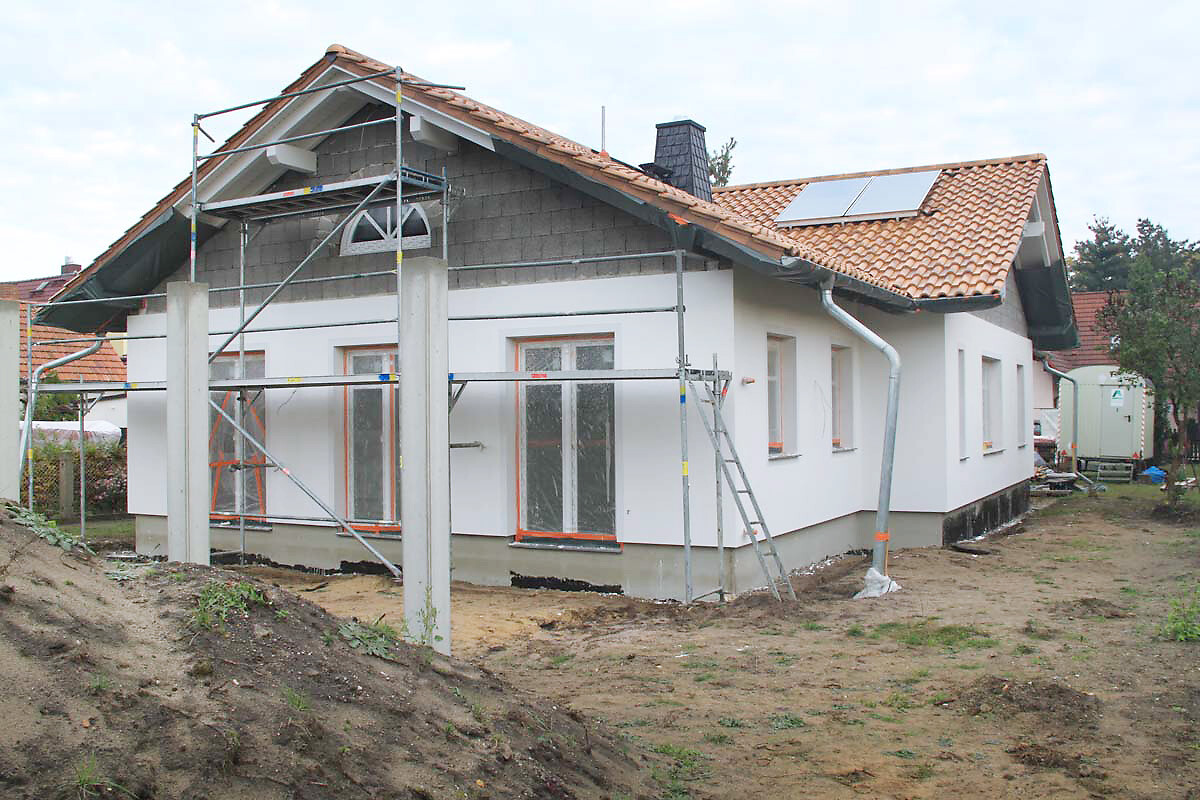 Gern poste auch ich unseren aktuellen Bautenstand... zu sehen ist der Feinputz. Dieser wird noch im endgültigen Farbton gestrichen.. wir wissen leider noch nicht, welcher Ton es werden soll.. sind noch auf der Suche. Ich muss auch immer wieder unsere Handwerker loben... die machen ihre Sache wirklich gut.. geben sich richtig Mühe. Wir freuen uns jedes mal über die neuen Fortschritte. LG Steffi.