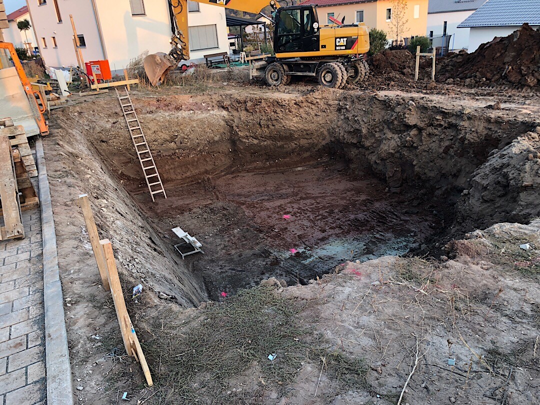 Mal so ne Frage, wie lange dauert es noch ab dem Ausheben der Kellergrube bis die Kellerbodenplatte vorbereitet ist (Schotter, Verdichten, Schalung, Dämmung, etc.)? Meint Ihr das wird Ende der nächsten Woche was? Das war gestern. Ich gehe davon aus, dass der Keller heute komplett ausgegraben wird und das Geländer verdichtet.