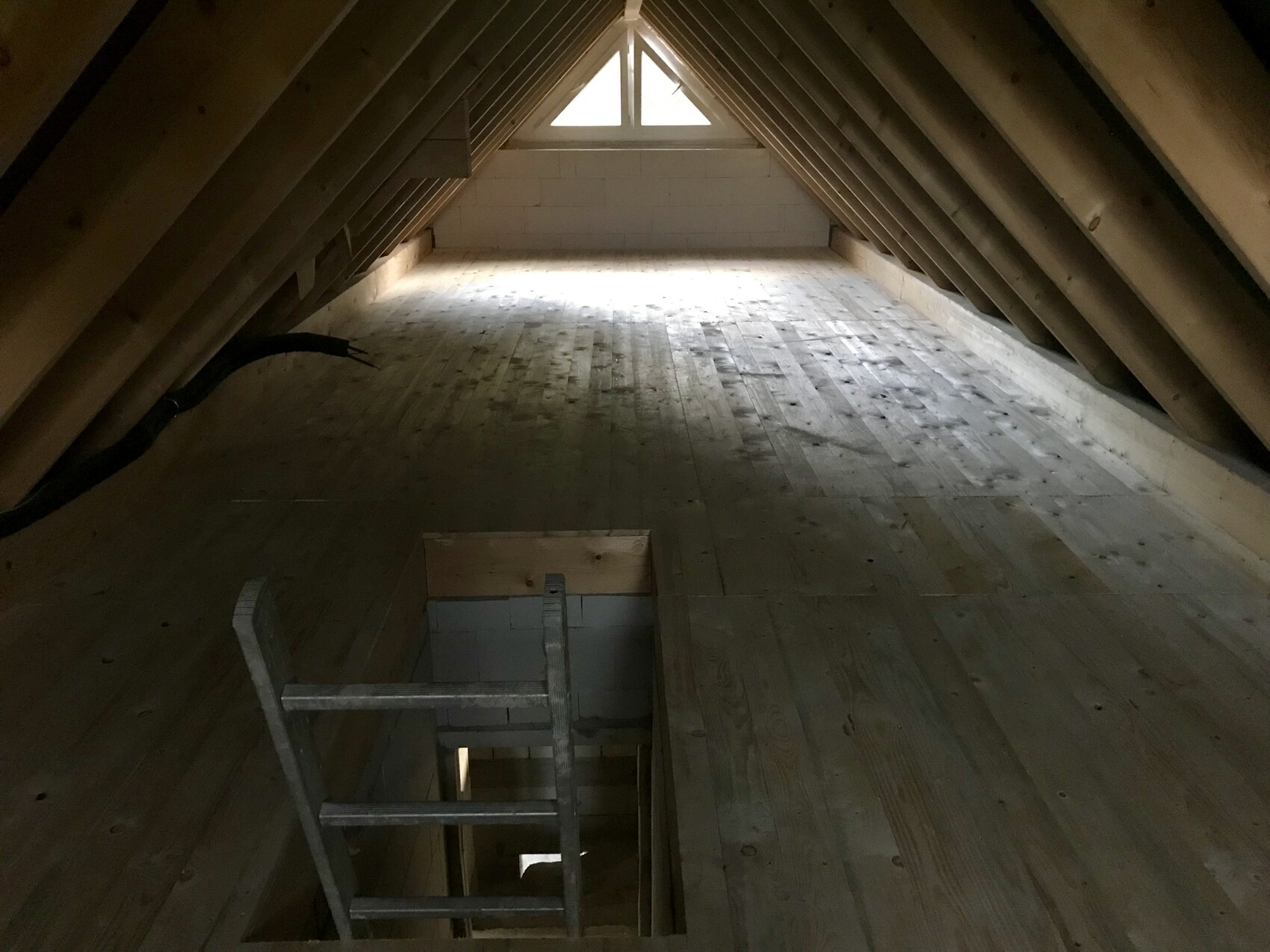 Der Boden ist erst mal nur Abstellfläche und Ausbaureserve. Da wir eine kleine feste Treppe vom OG zum Boden haben kann es sein das wir irgendwann ausbauen.