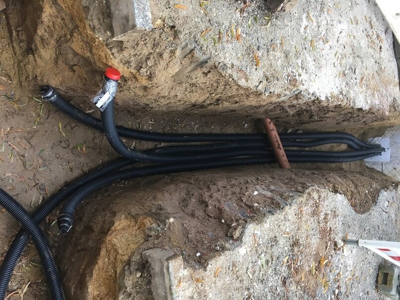 8 - Mehrsparteneinführung gedämmt und mit Leerrohren in die Straße verlängert