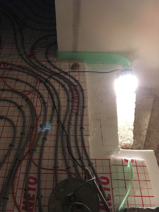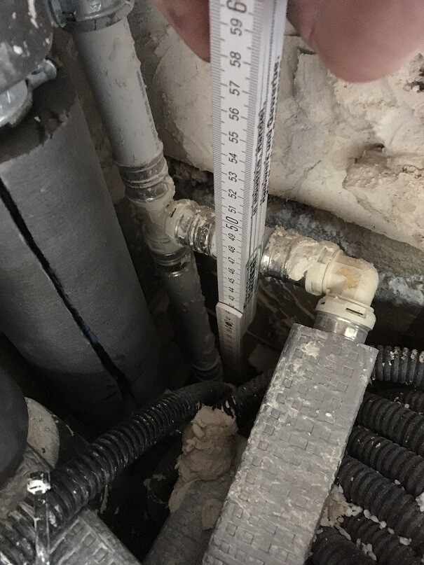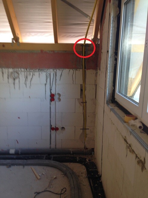 Was man auf Bild 8 nicht sieht. Äußere Leitung fast 50 cm, die daneben 30 cm nicht isoliert, auf Höhe der Betondecke.