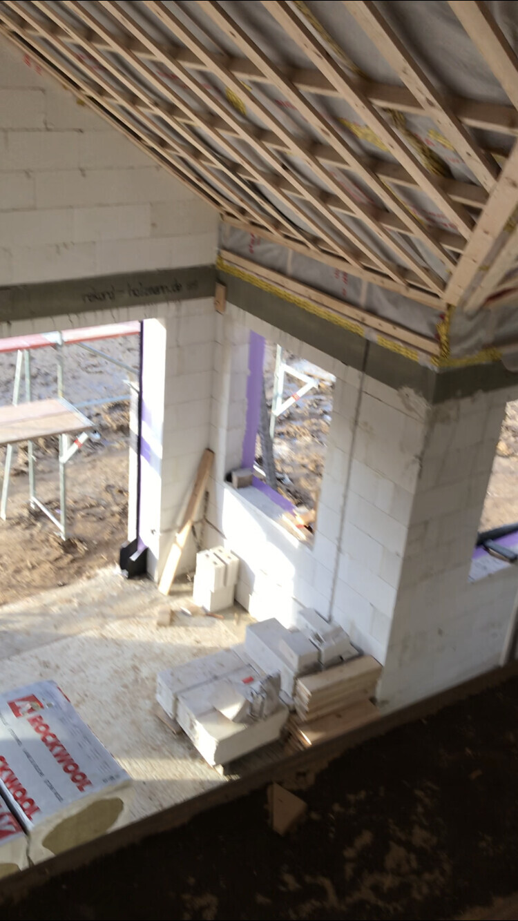 Das ist nicht massiv. Der Rest vom Dachboden ist nicht ausgebaut und wird als Stauraum genutzt.Ah und das ziehen die Zimmerer rein. Unten sind die Wände massiv.