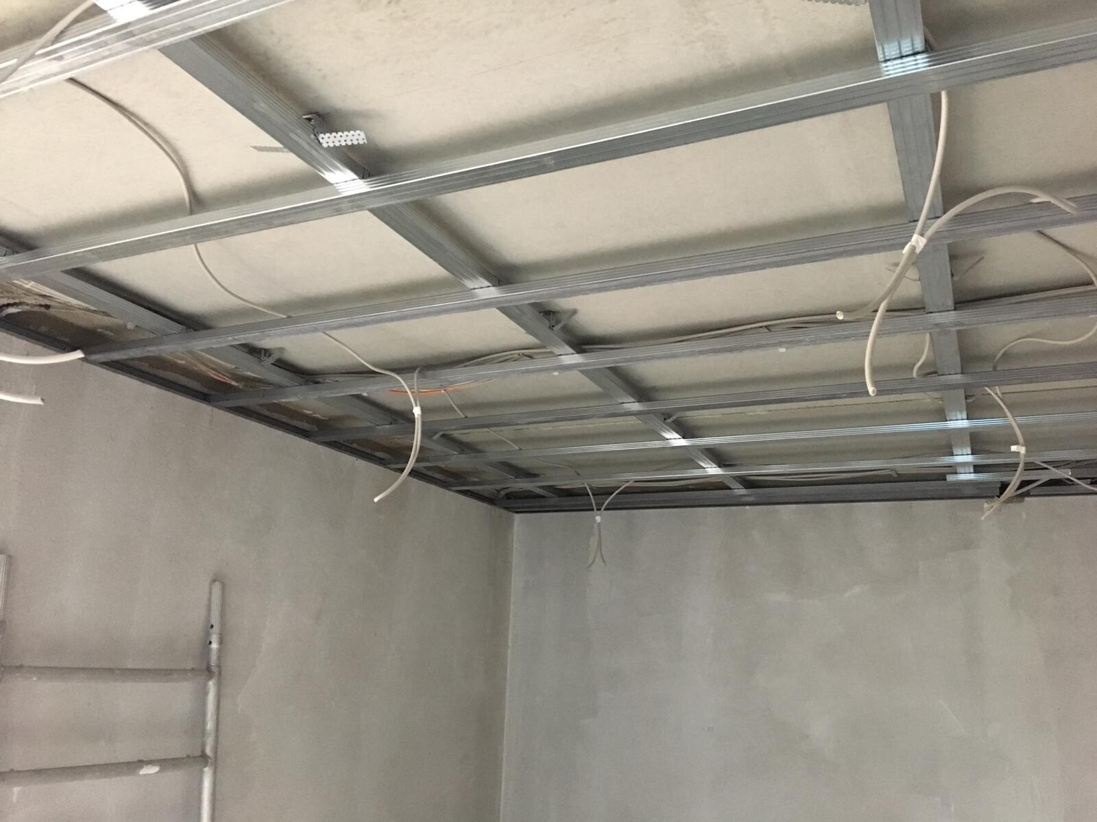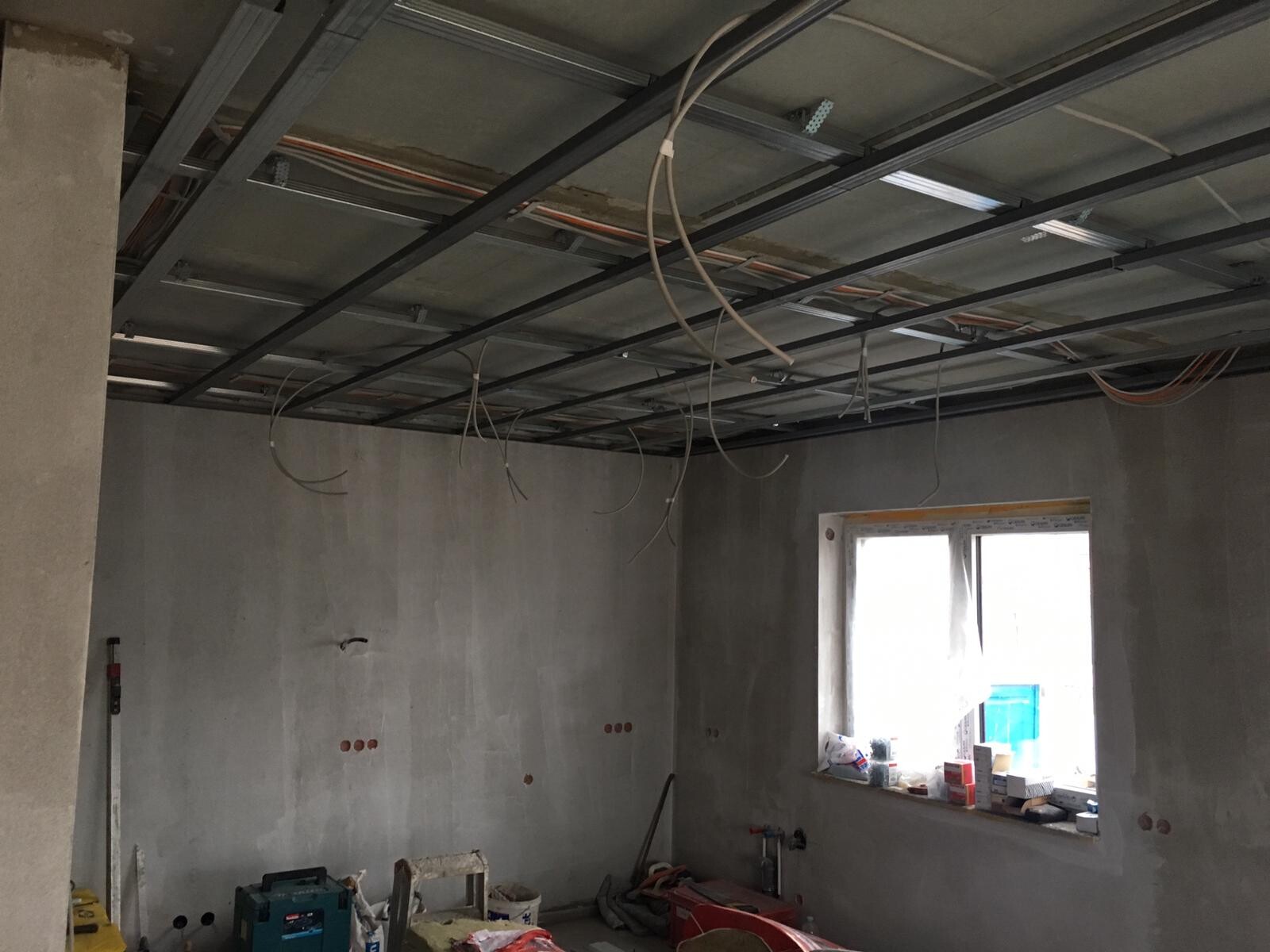 Ansonsten sind wir nun fertig mit dem Abhängen der Decken, Mittwoch kommen die Platten dran. Einige Räume wurden in der Zwischenzeit auch schon geputzt.