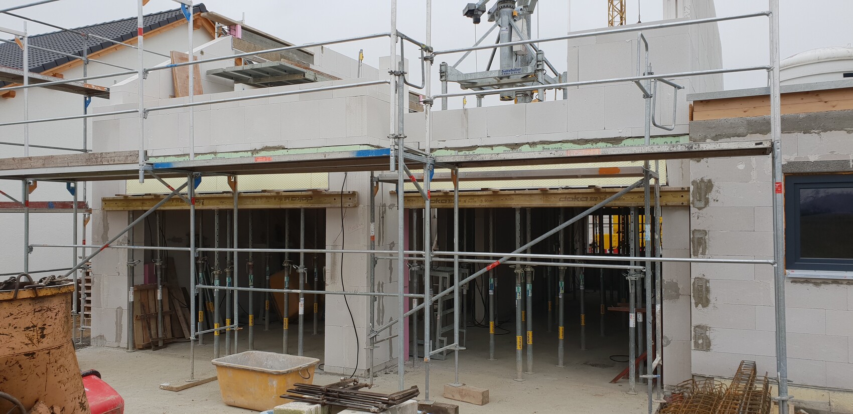 Besteht der Keller aus Fertigteile oder wurde er durch Ortbeton erstellt?Der Keller ist komplett an Ort und Stelle gegossen, also Ortbeton.Bin trotzdem begeistert. Mein Baukoordinator hat sich vor 1 Woche das erste mal zu einem Fertigstellungsdatum geäußert, ggf. wird es Juli 2019 :-p