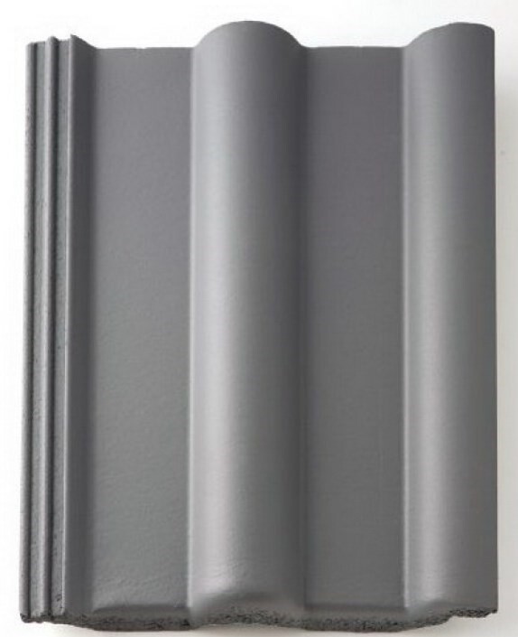 Nahaufnahme eines grauen Dachziegels mit profilierter, welliger Oberfläche.