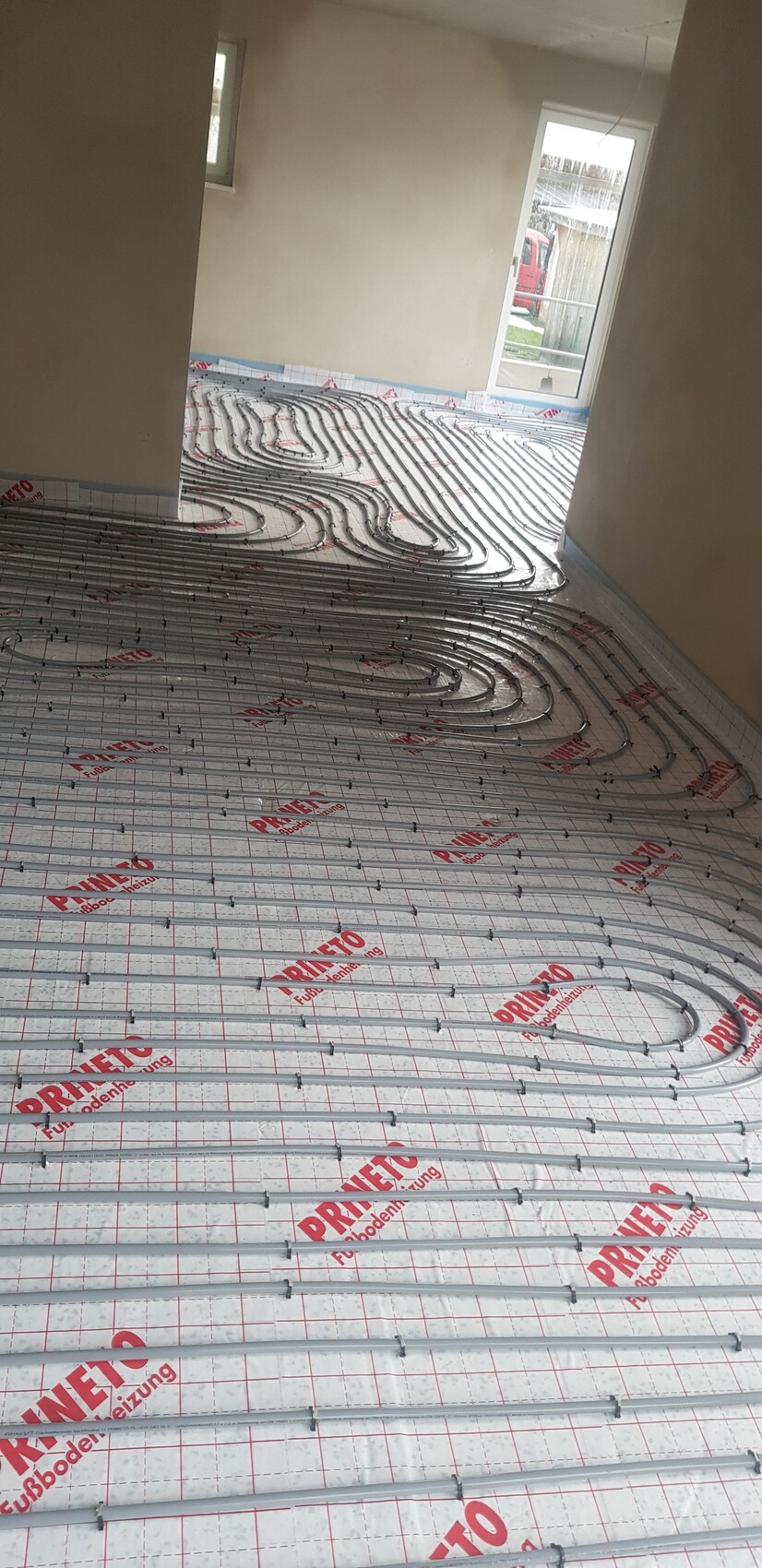 In den vergangenen zwei Wochen wurde die Fußbodenheizung verlegt und der Estrich gegossen. Jetzt heißt es erst mal zwei Wochen Lufttrocknen und anschließend wird noch mal zwei bis drei Wochen aufgeheizt.