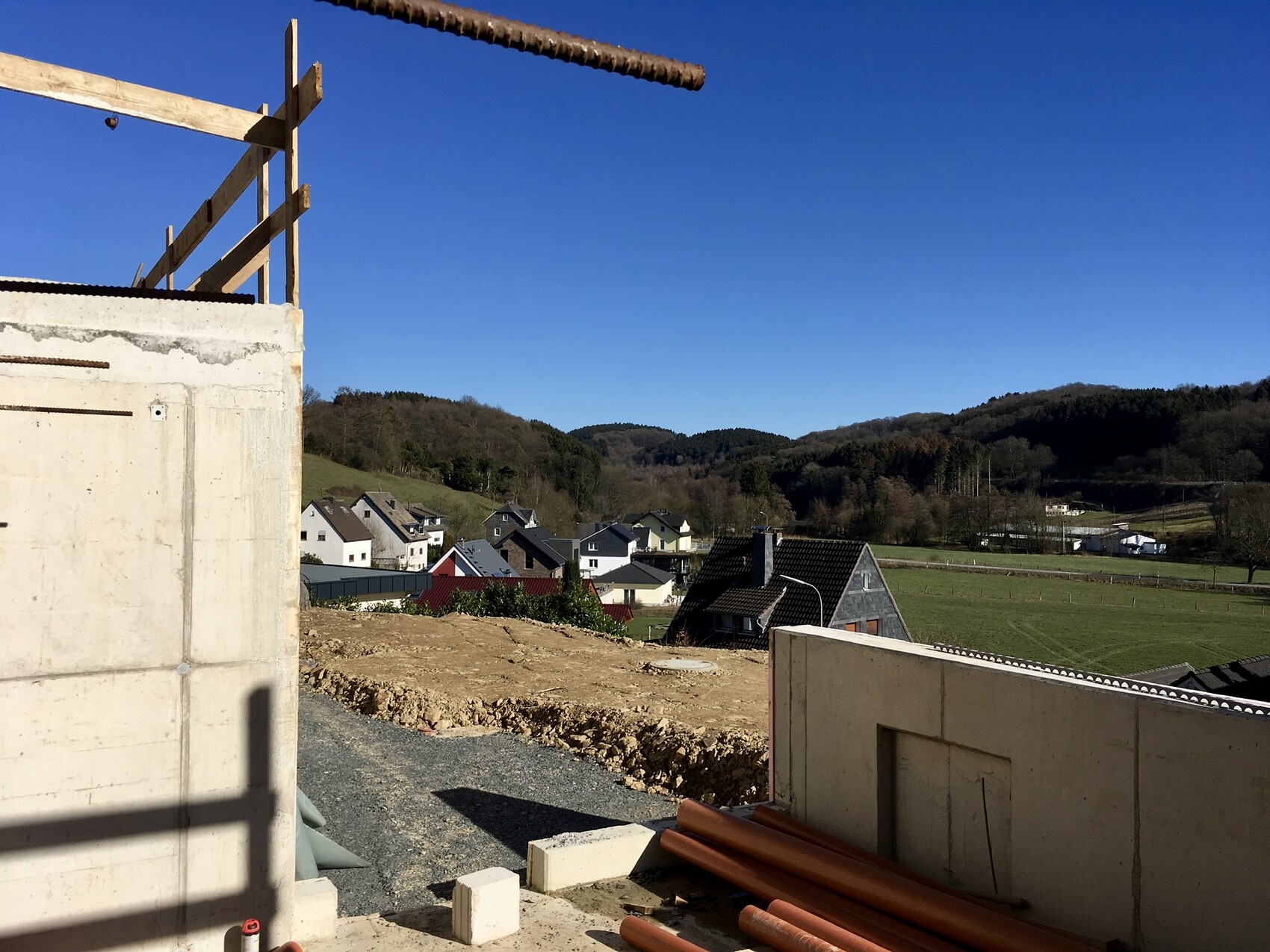 Ende kommenden Monats sollte auf den Bodenplatten das Haus stehen. Dann kommt ein Update.