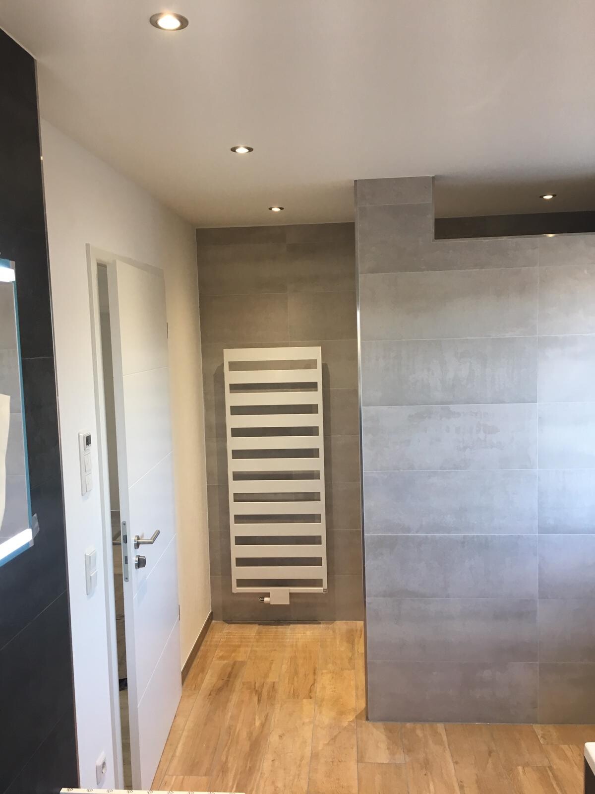 - das kleinere Bad ist soweit fertig (Handtuchheizkörper kommt morgen an die Wand)