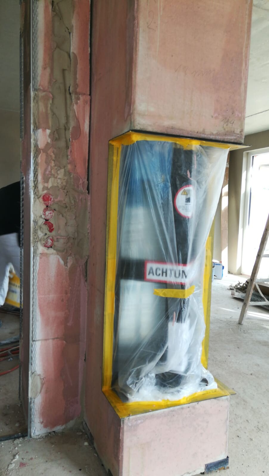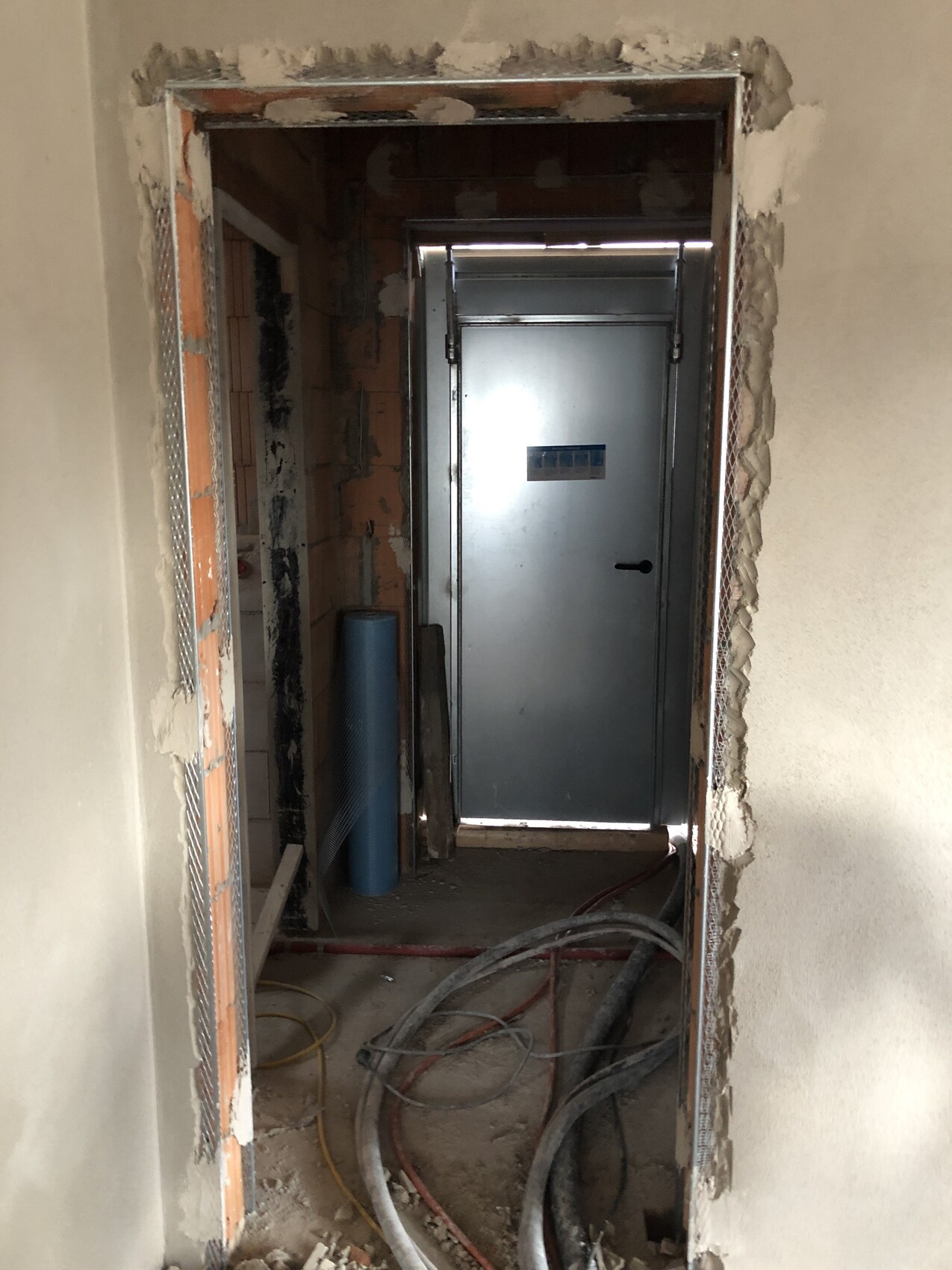 - Hab vergessen dem Putzer zu sagen, dass die Laibungen wegen einer Schiebetür verputzt werden soll, daher musste er unverschuldet abkratzen und neu machen.