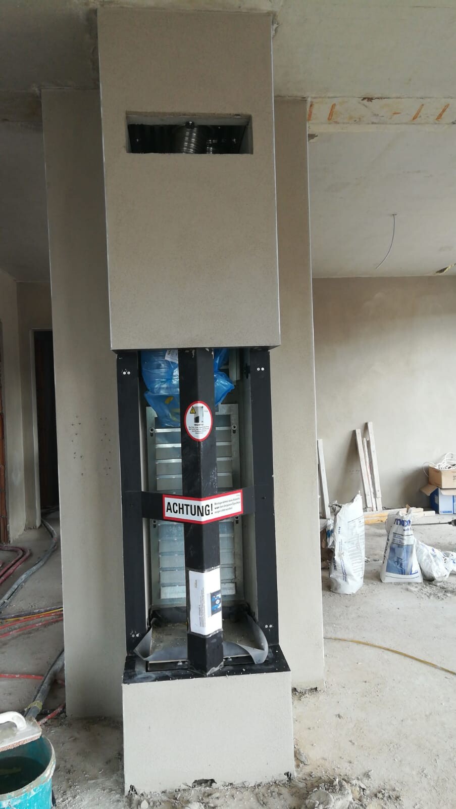 Falls es interessiert, der Kamin ist der Schiedel Grande S in rosa und zeigt zur Küche bzw. Esszimmer