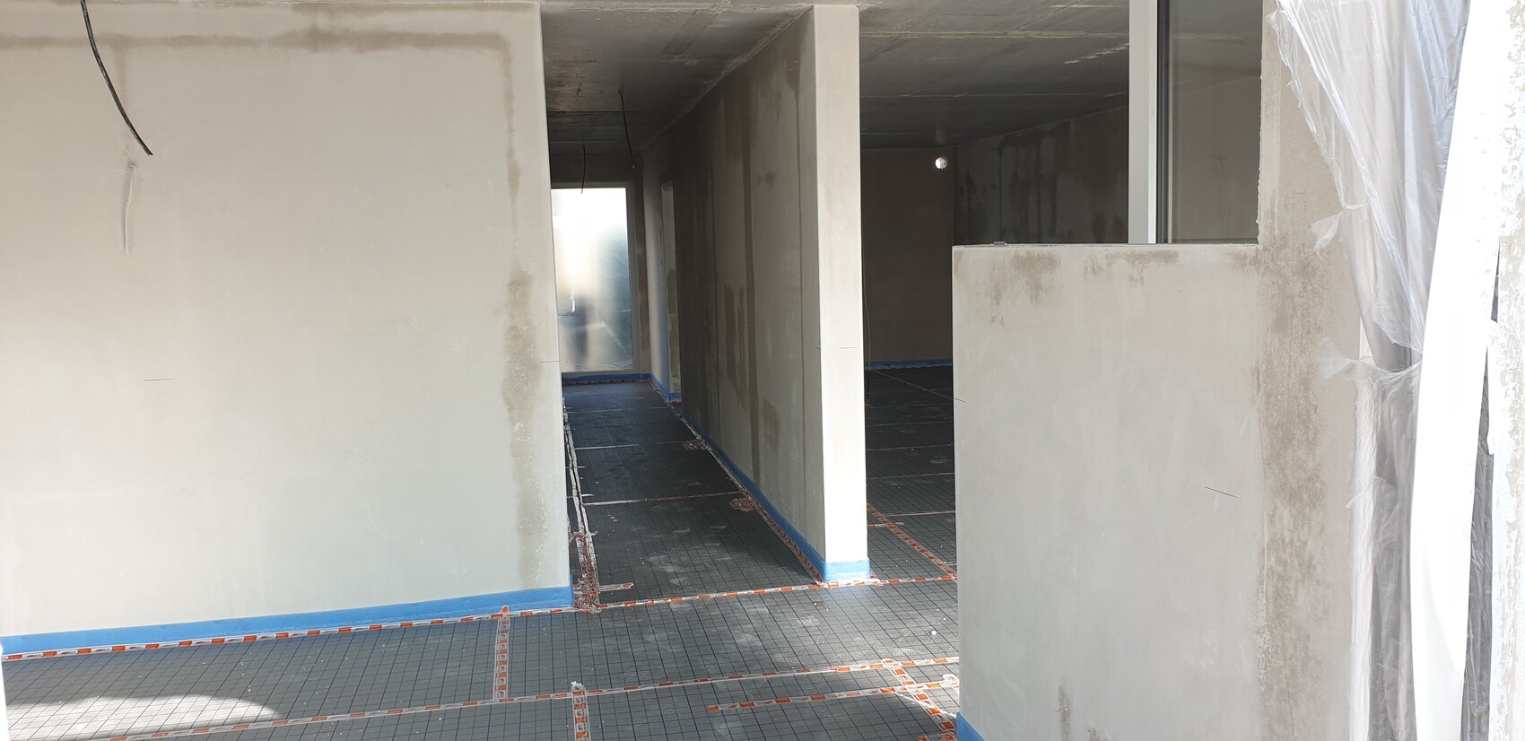 Innenputz sind fertig, die Dämmung für die Fußbodenheizung und der Trockenbau ist vorbereitet. Nächsten Donnerstag/Freitag kommt der Schnellestrich. So können im Anschluss die Endarbeiten beginnen Wo baut ihr? Bei uns hat ebenfalls ASC den Estrich gemacht