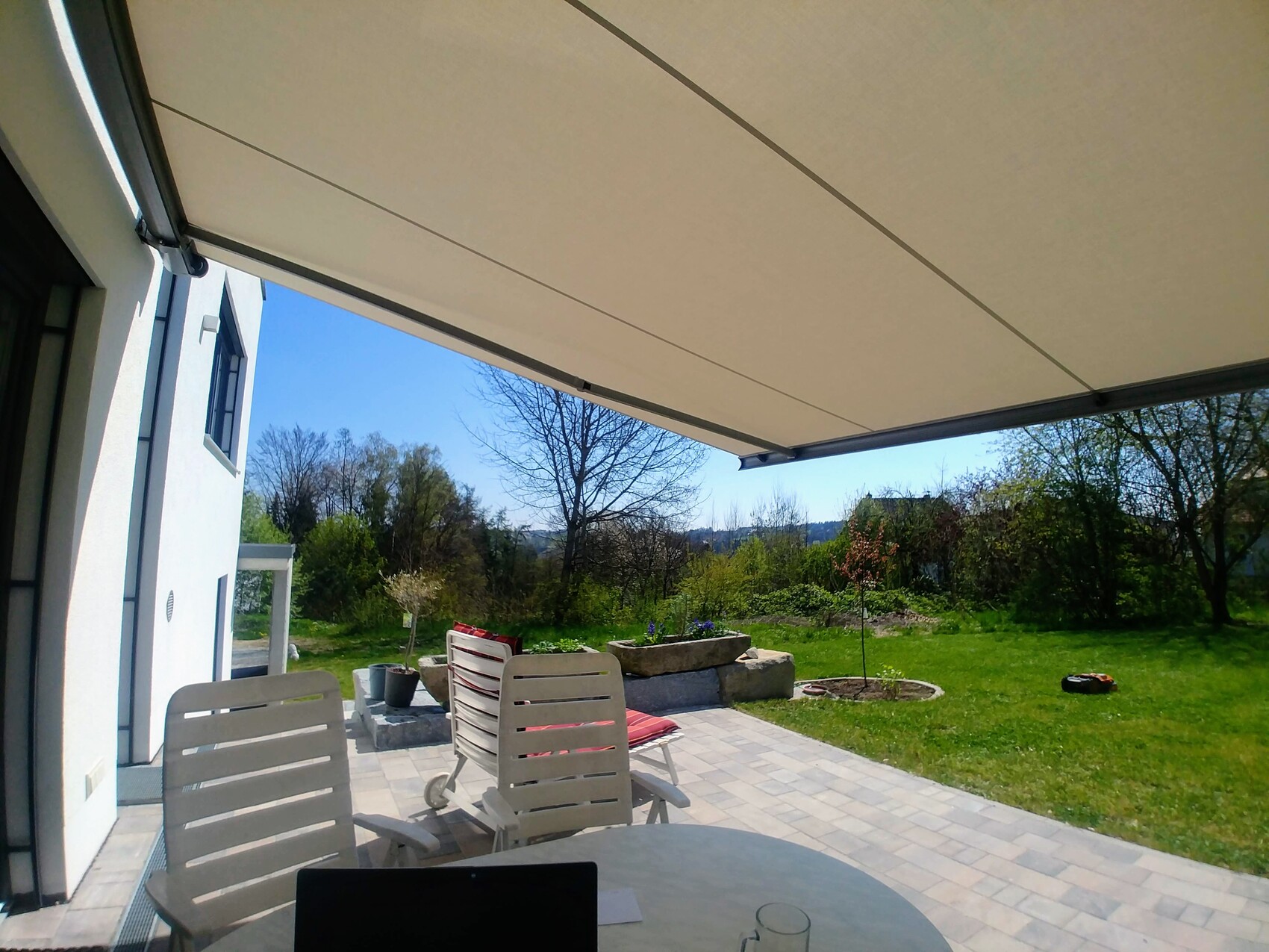 Frage mich eher was für ein Pflaster ist. Naturstein? Beton bei dem Preis ja eher nicht?!170qm finde ich persönlich nicht wenig (vom Großkunden natürlich weit entfernt). Das ist irgendein Betonstein versiegelt, also nicht Rau ,mit Glitzer drin und einer Stärke von 10cm.Unsere Markise wurde heute montiert. So hatten wir uns das vorgestellt.