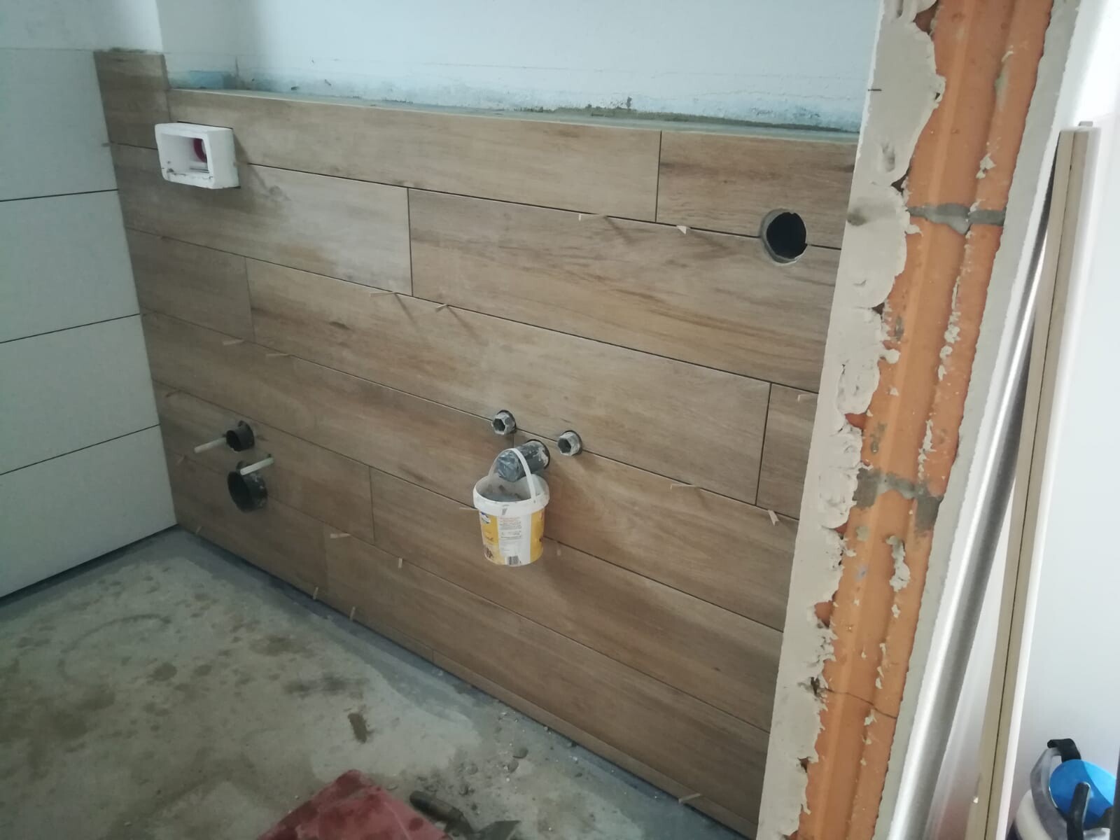 Ist mir auch schon aufgefallen. Ich werde den Fliesenleger mal darauf ansprechen und fragen warum er es so gefliest hat. Er wird sich dabei was gedacht haben. Bin mal gespannt.