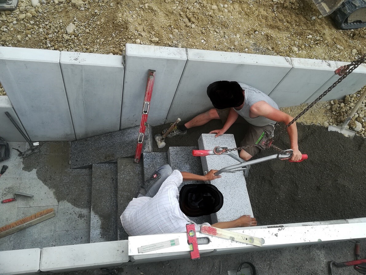 Die Kellertreppe außen wurde gestern gesetzt: