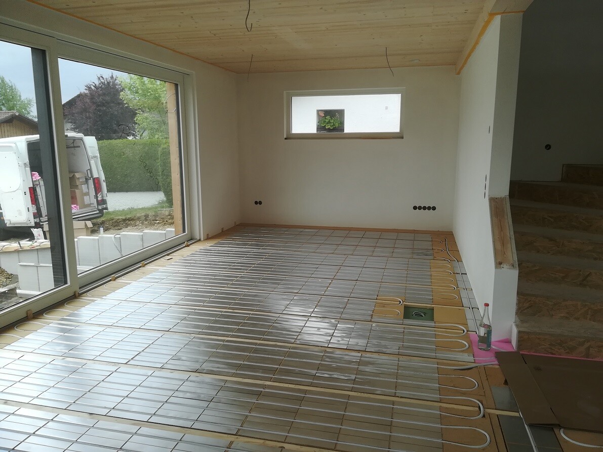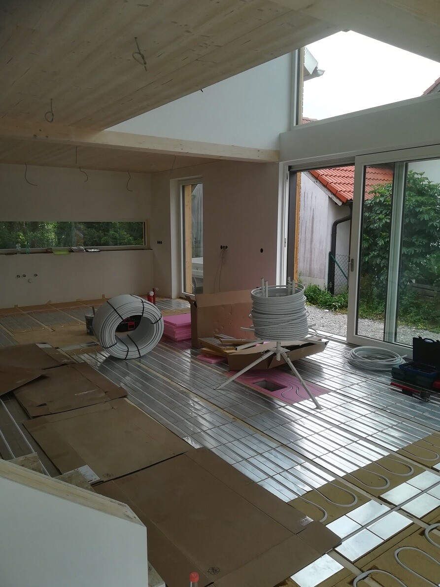 Im EG liegt jetzt komplett die Fußbodenheizung: