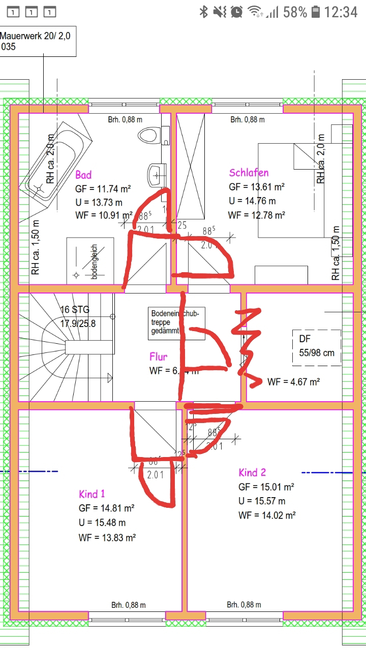Vermutlich nicht, ich würd' aber auch für jedes Kind ein eigenes Zimmer haben wollen. Dazu würde ich den Carport verlegen und an der bisherigen Stelle einen eingeschossigen Anbau für Schlafzimmer und Ankleide erstellen. Zugang durch Hauswirtschaftsraum oder besser kleinen Flur durch Trennwand bauen und Durchbruch da, wo jetzt die Waschmaschine eingezeichnet ist.Ja...es ist der amtliche Lageplan...aber die Daten des Bebauungsplan sind darauf zu erkennen.