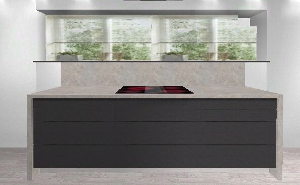 - gewünschte Keramik- oder Beton- Arbeitsplatte können ohne Nähte installiert werden