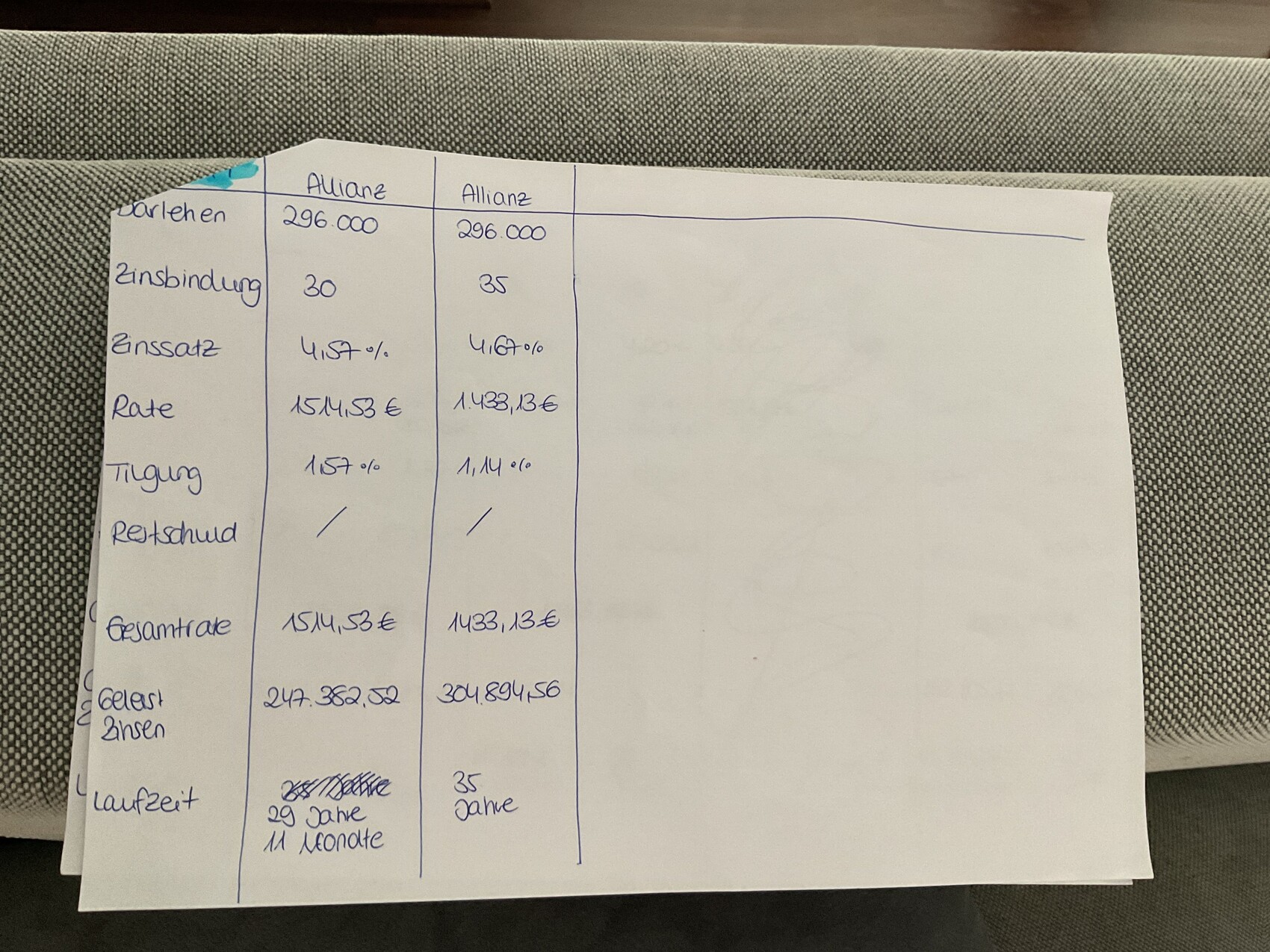 Für uns kommt nur etwas mit 25 bis 30 Jahren in die engere Auswahl. Alles andere ist mir zu viel Risiko mit der Familie.