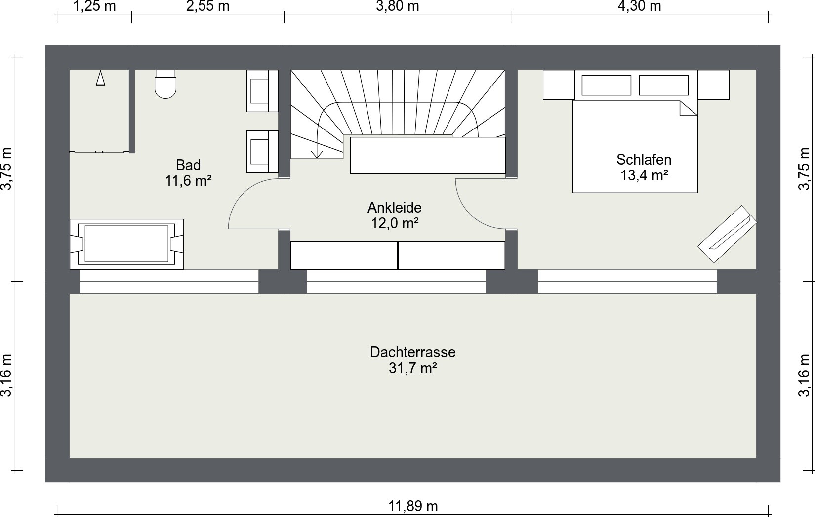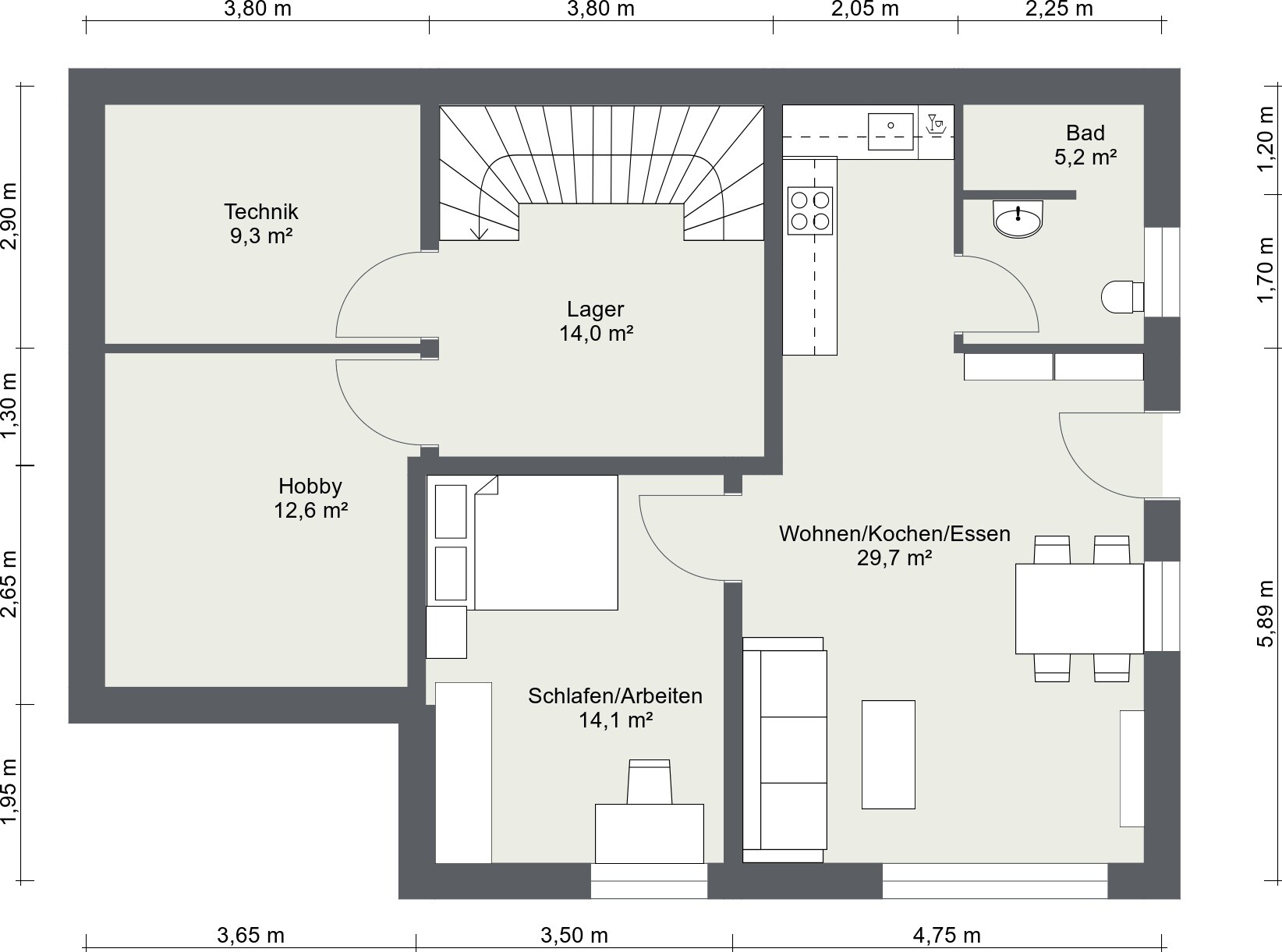 Einzig den Wohnbereich im DG hätte ich mit dem Elternbereich getauscht, einfach der Gemütlichkeit halber. Wenn ich im Wohnzimmer bin und was zum Knabbern möchte, muss ich erst ins EG zur Küche runter