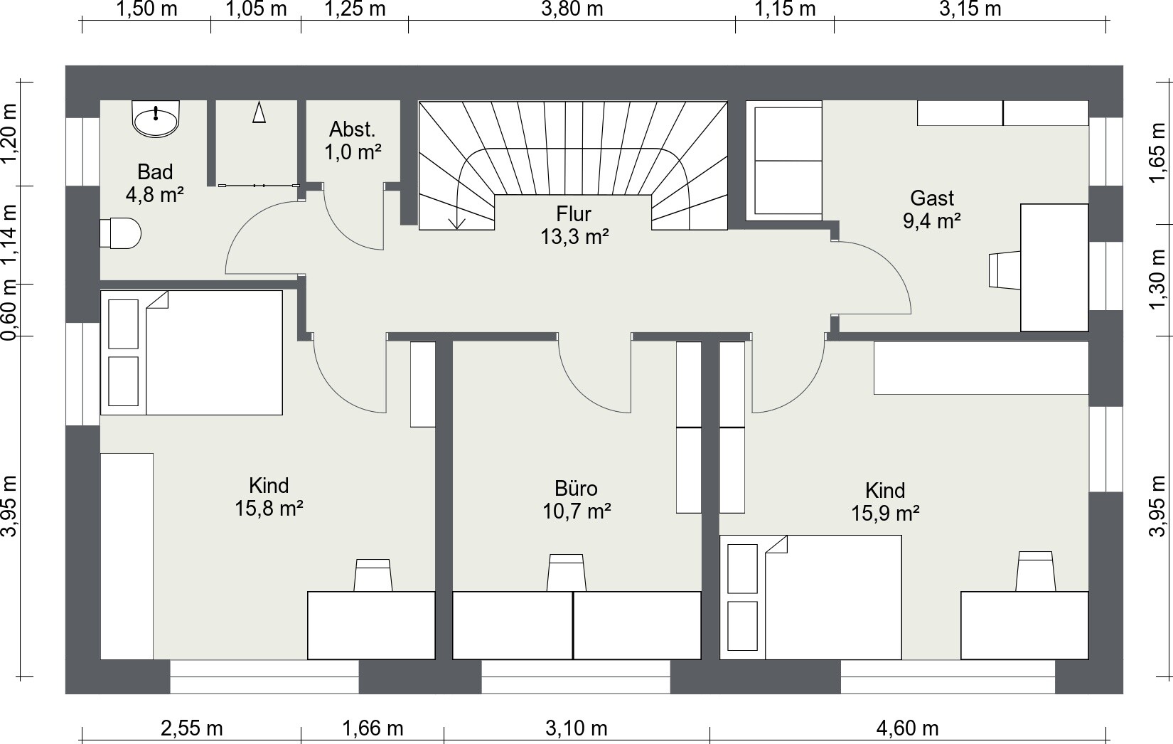 Es sind jetzt 2 Zimmer (1 Büro + 1 Gästezimmer/Büro Frau) im OG1 vorhanden.