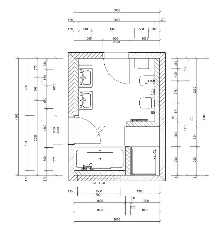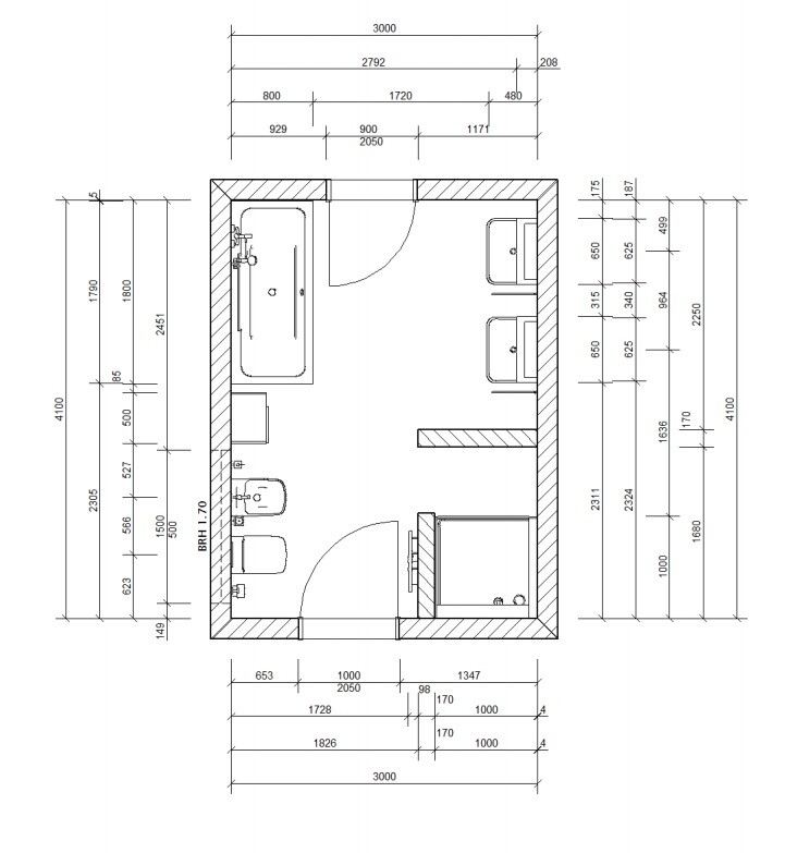 Elternbad sind wir uns noch ziemlich unsicher, meine Frau hätte da gerne eine besondere Lösung, ich würde einfach die Gegenstände an den Wänden links und rechts der Reihe nach anordnen.