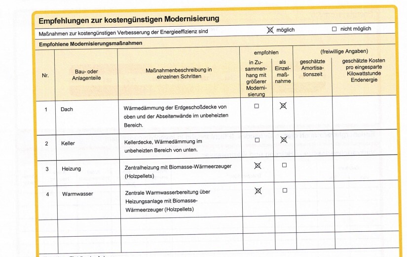 Dämmung der obersten Geschossdecke und Austausch der Fenster wären sinnvolle kurzfristige Maßnahmen.