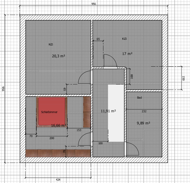 Auf Platzsparendenden 9,86 x 8,86 unter Minimierung der Flurfläche: