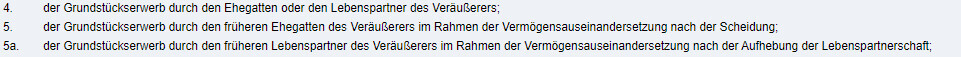 Der Geldsegen lief intern. Bitte genau lesen!Hab ich. Aber egal, wie man es nennt, er hat Geld bekommen und Du das Haus. Und das (auch ohne Geld) nennt man Grundstückserwerb oder auch platt "Kauf". Davon abgesehen habt Ihr als (Noch)Ehepartner übertragen bzw. in er Vermögensauseinandersetzung. Da kann man ohne Grunderwerbsteuer erwerben = kaufen. Das hatte ich aber auch geschrieben. So stehe es im Gesetz.
