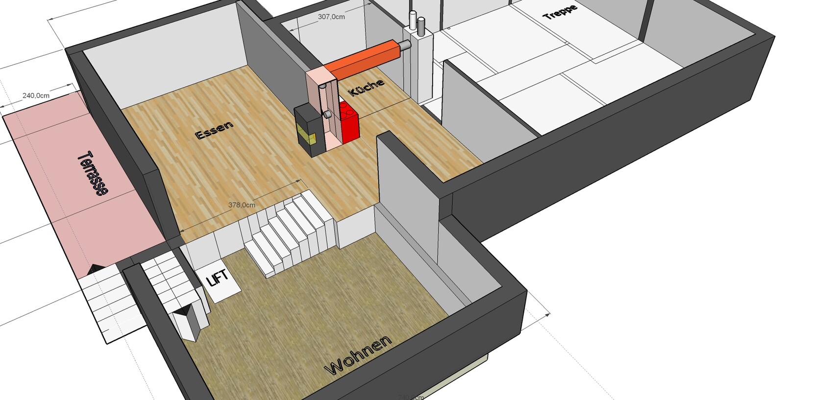 Wir hab ohnehin bedenken, ob dieses Volumen nicht ungemütlich wirkt.Diese Bedenken hätte ich eher durch das tiefergelegene Wohnzimmer. Ich kann mir nur schwer ein kuschliges "Nest" vorstellen, welches permanent von oben einsehbar ist. haydee 16.03.2018 18:16